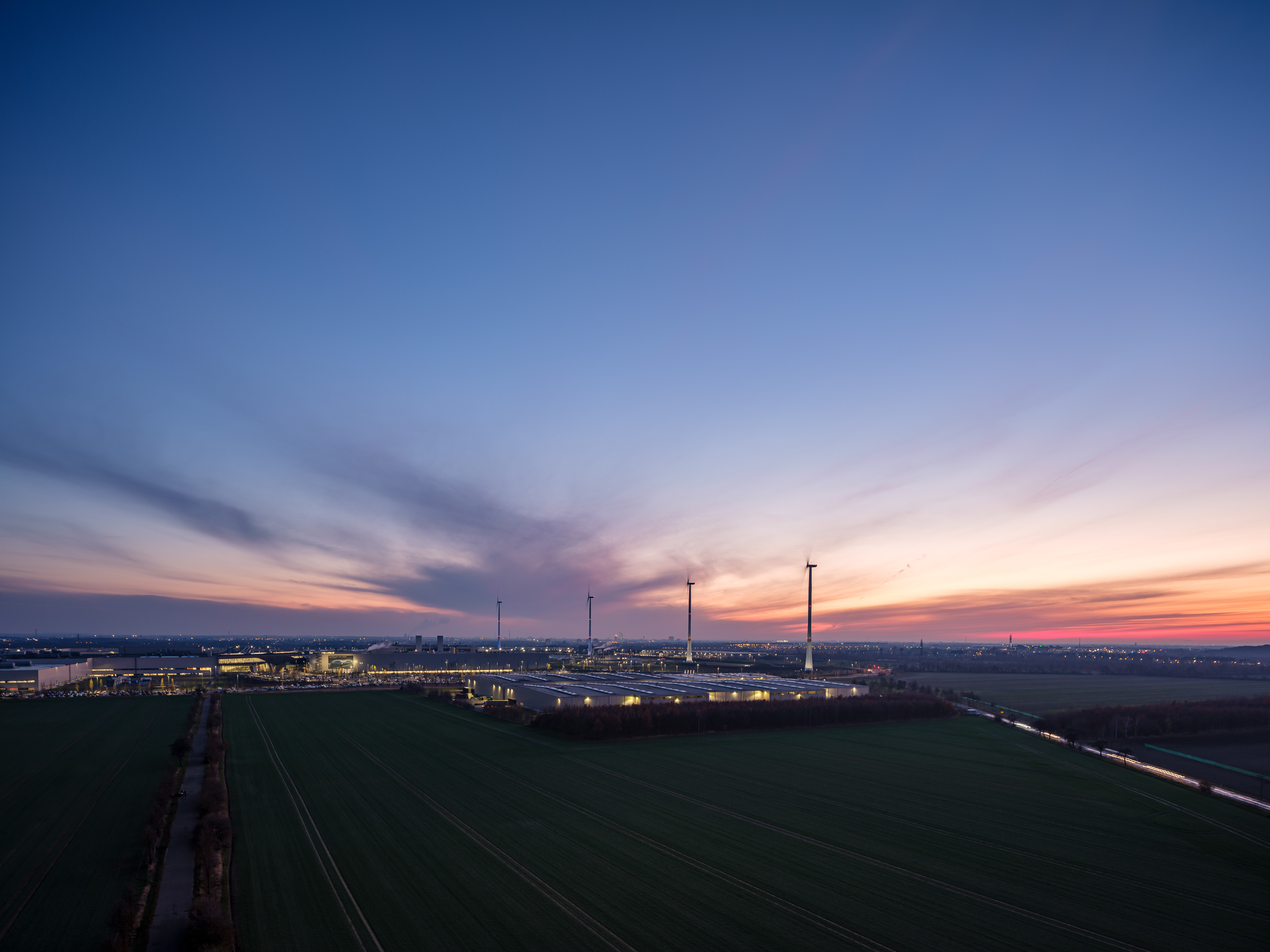 Windräder BMW Group Werk Leipzig bei Nacht (12/2020)