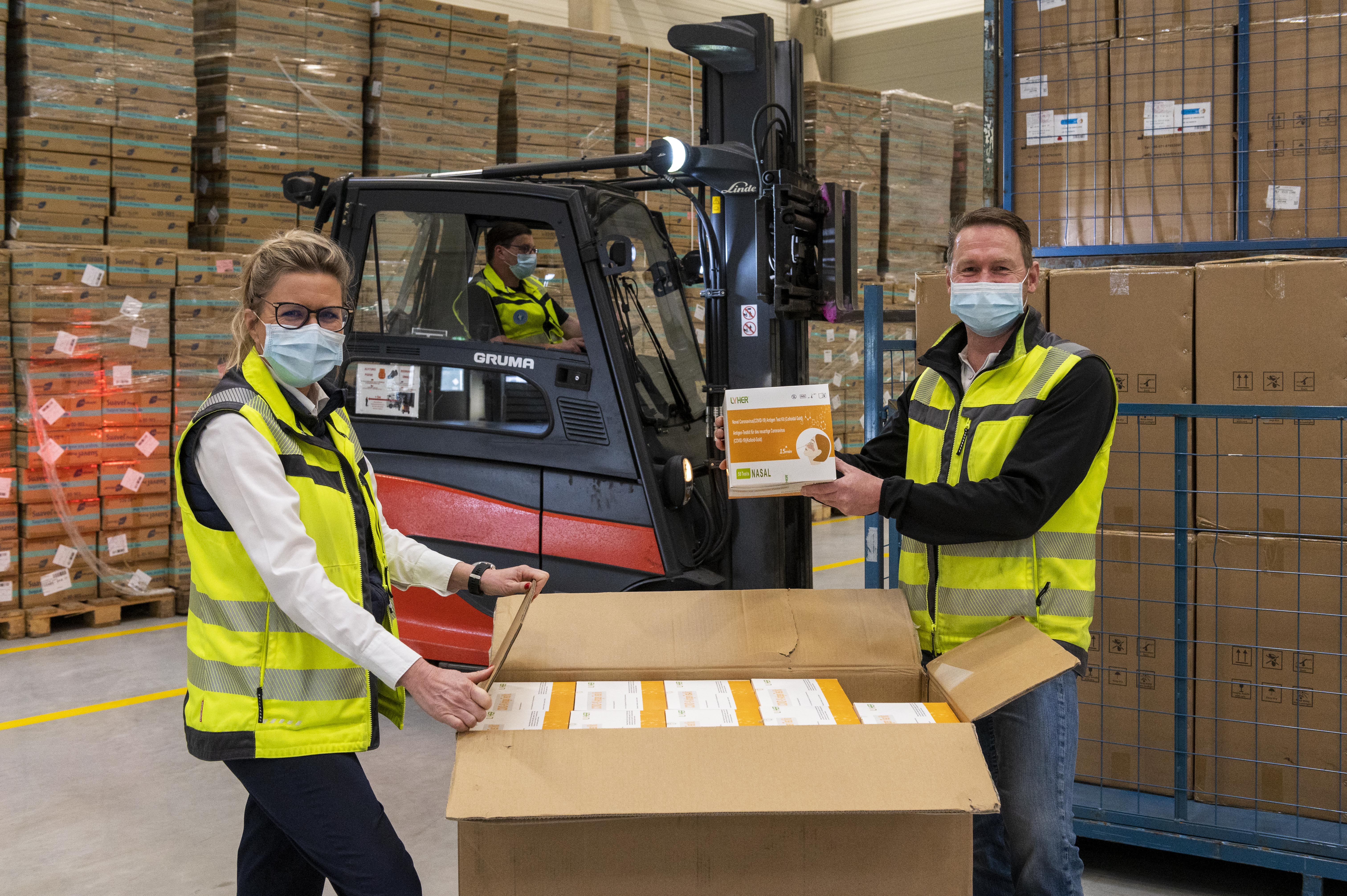 Ankunft der Corona Selbsttests im BMW Group Dynamikzentrum in Dingolfing (03/2021).