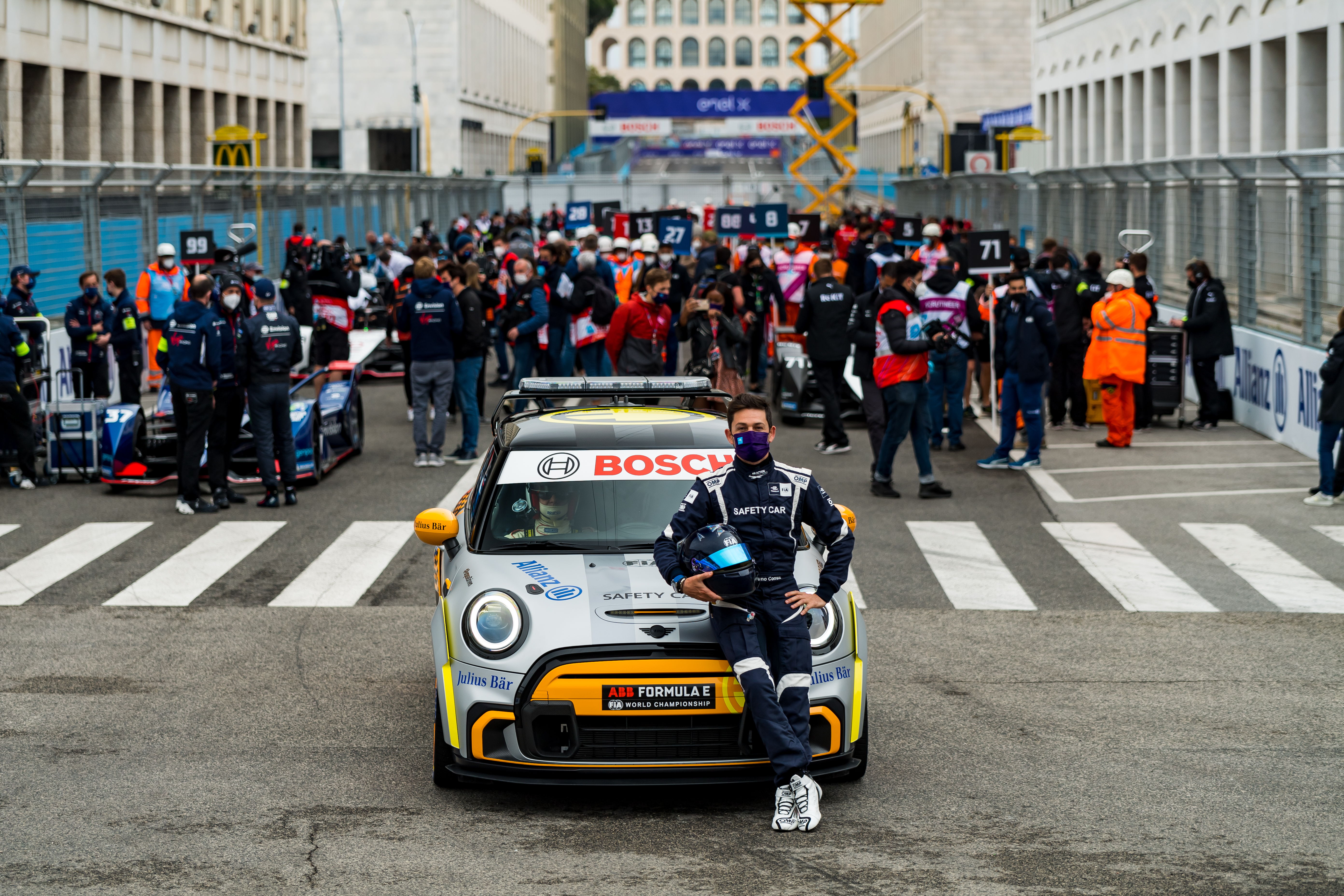 Rome (ITA), 8th April - 11th April 2021. ABB FIA Formula E World Championship, Season 7, Rome E-Prix, MINI Electric Pacesetter inspired by JCW, Safety Car, Bruno Correia.