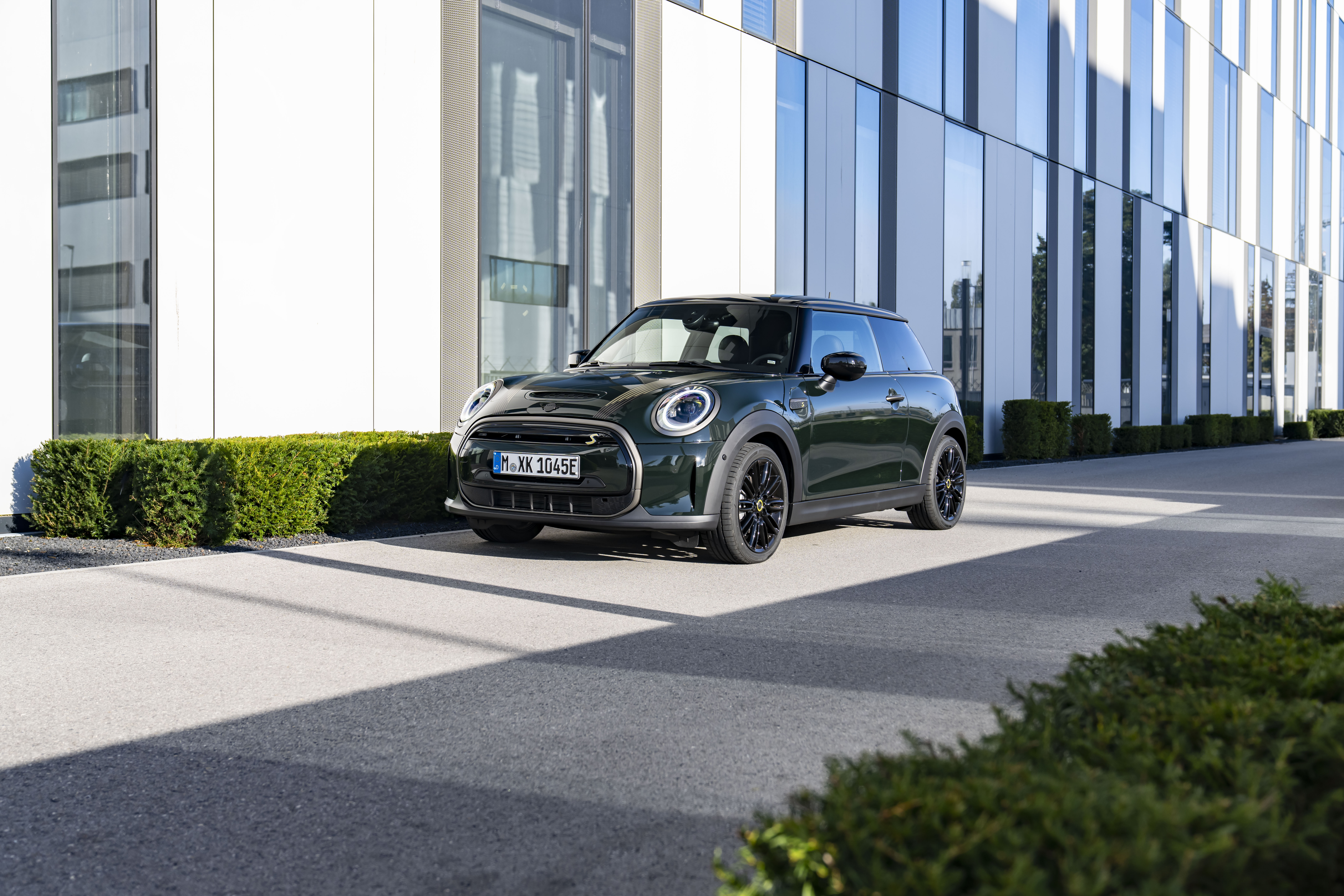 MINI Cooper SE Resolute Edition Rebel Green mit Dach und Spiegelkappen in Schwarz. (10/2022)