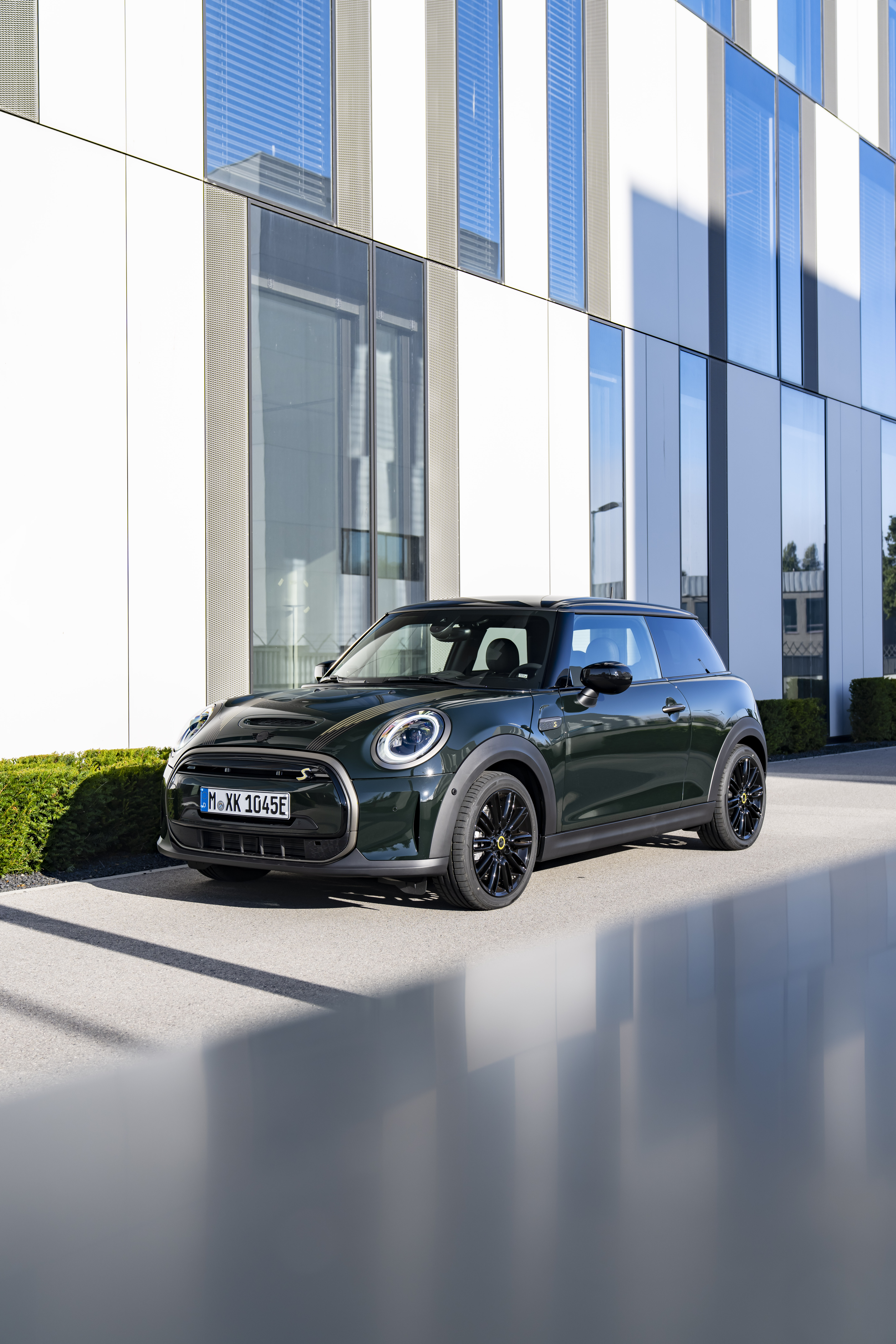 MINI Cooper SE Resolute Edition Rebel Green mit Dach und Spiegelkappen in Schwarz. (10/2022)