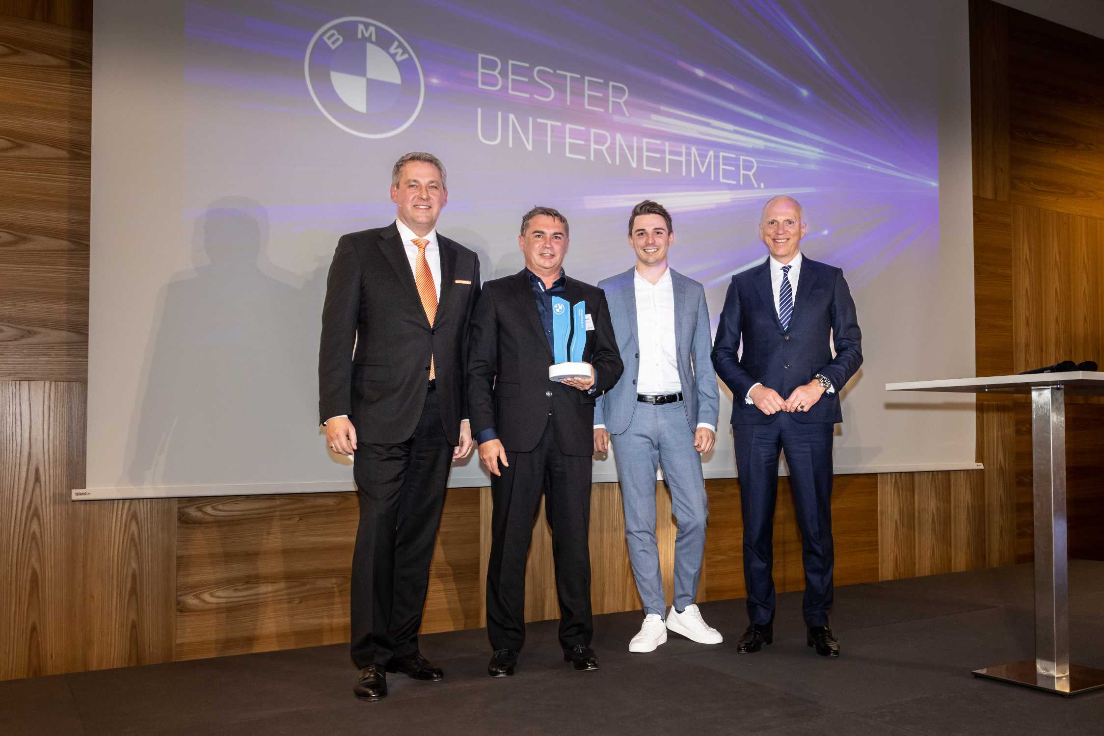 BMW Awards: BMW Deutschland zeichnet beste Handelspartner 2022 aus. V.l.n.r.: Stefan Teuchert, Leiter BMW Group Markt Deutschland; Richard Wagner ...