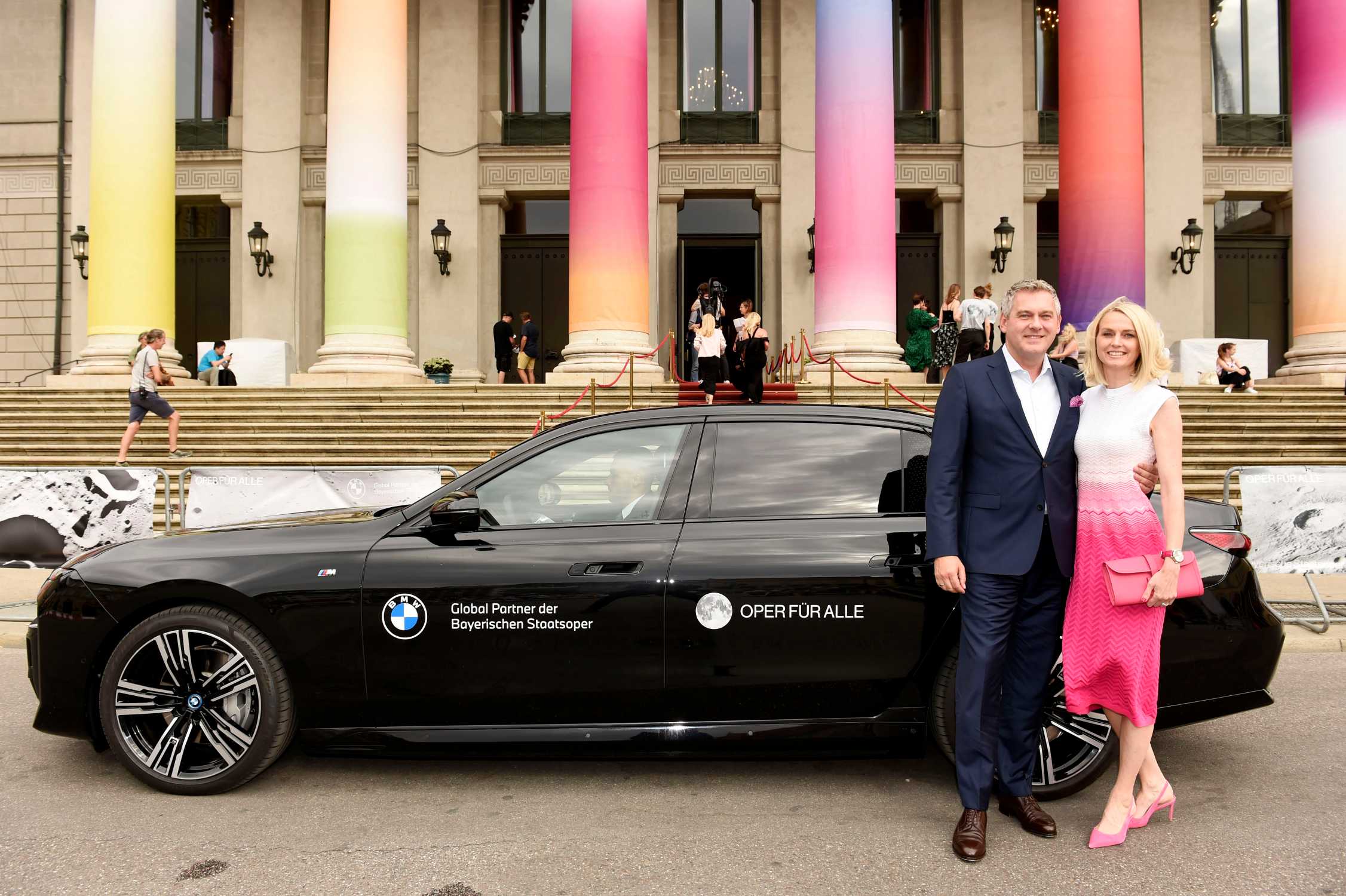 BMW und die Bayerische Staatsoper laden ein zu Oper für alle 2023 am 23. Juli auf dem Max-Joseph-Platz in München. Stefan Teuchert (Leiter BMW Group Deutschland) mit Frau Katja Teuchert. Foto: Michael Tinnefeld. (07/2023)