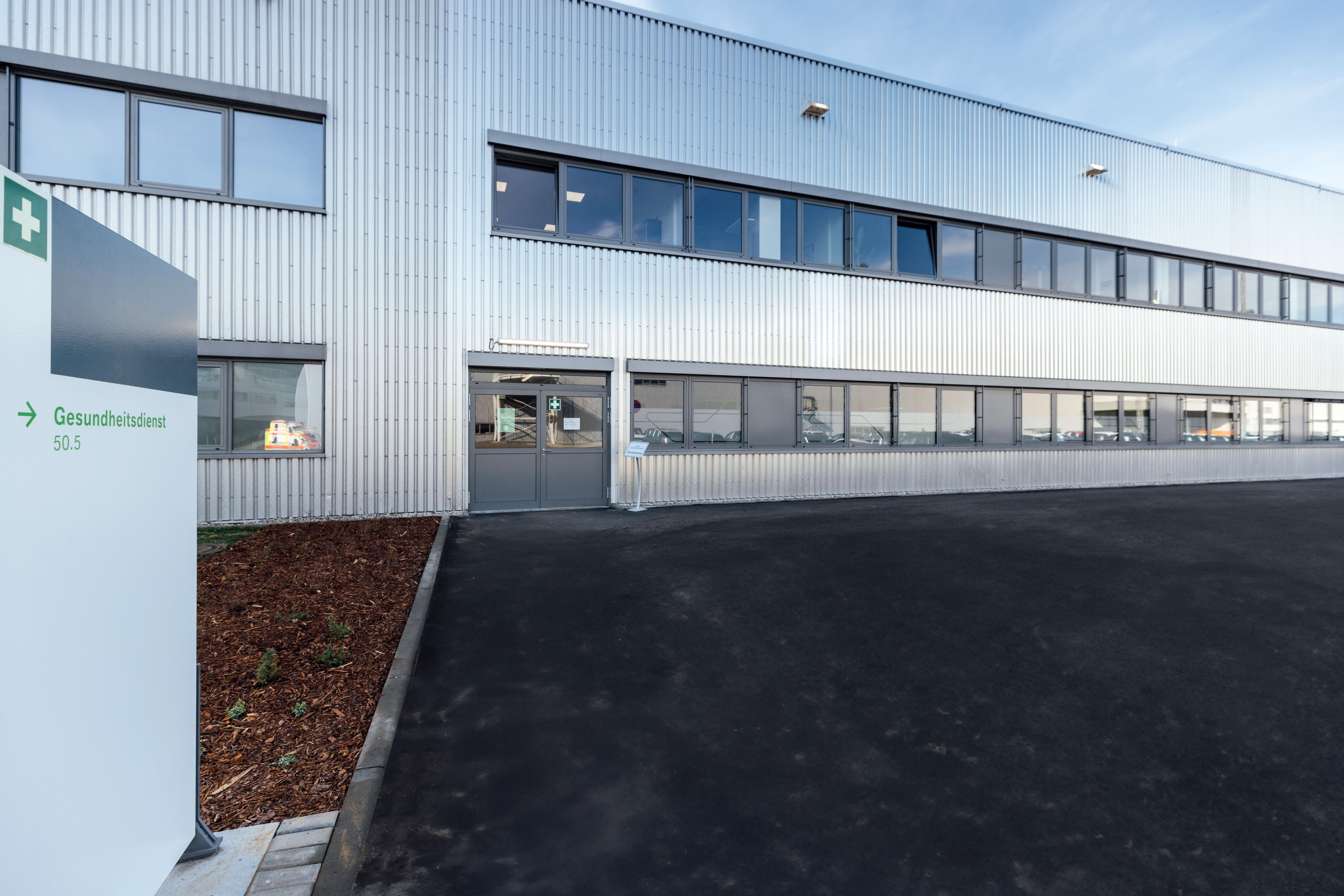 Die Architektur des Neubaus des Gesundheitsdienstes im BMW Group Werk Leipzig ist von den Produktionshallen inspiriert (03/2024)