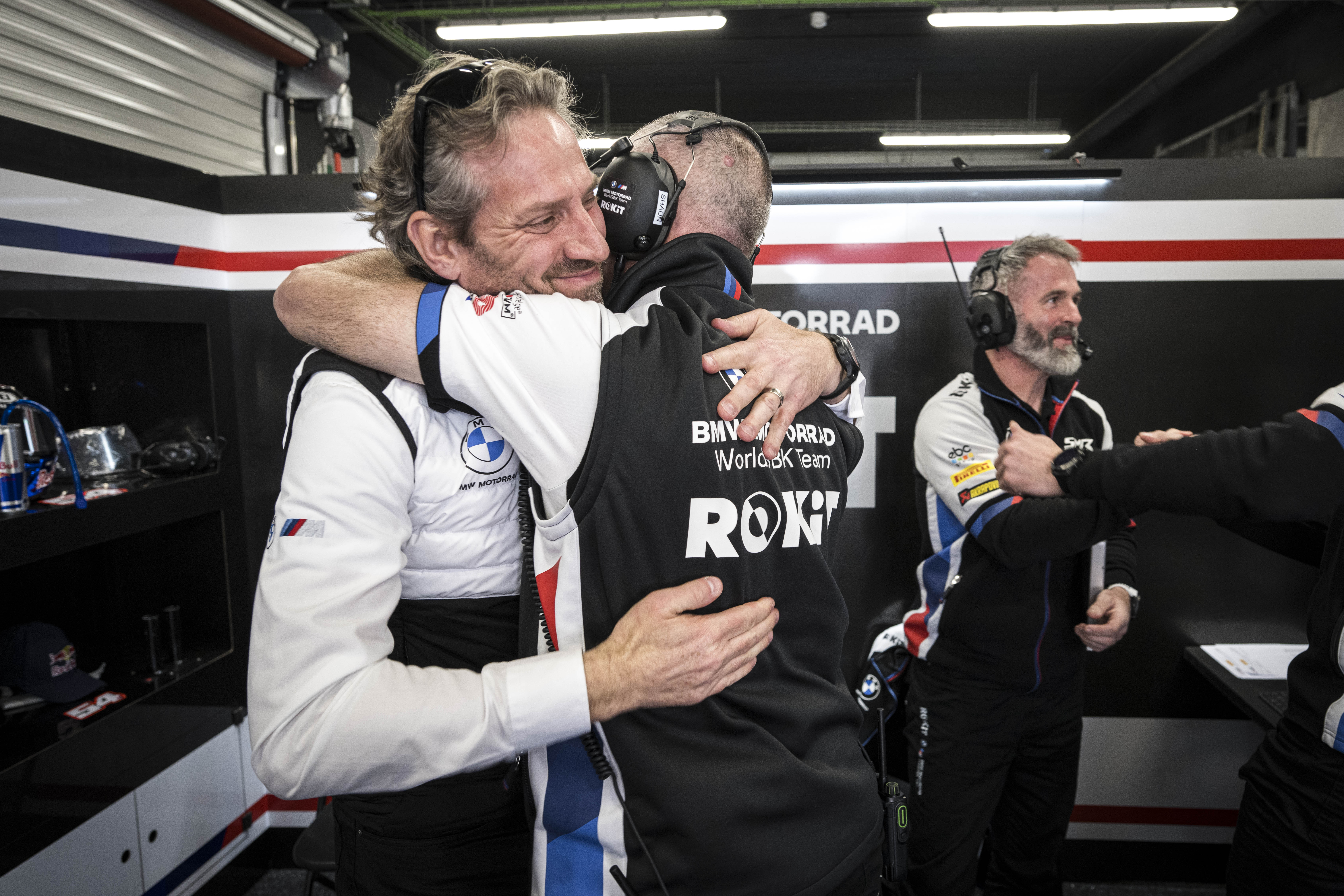 23rd March 2024. Barcellona (SPA). FIM Superbike World Championship. BMW Motorrad Motorsport. BMW Motorrad WorldSBK Team, BMW M 1000 RR, Marc Bongers, BMW Motorrad Motorsport Director, with Shaun Muir, Team Principal.