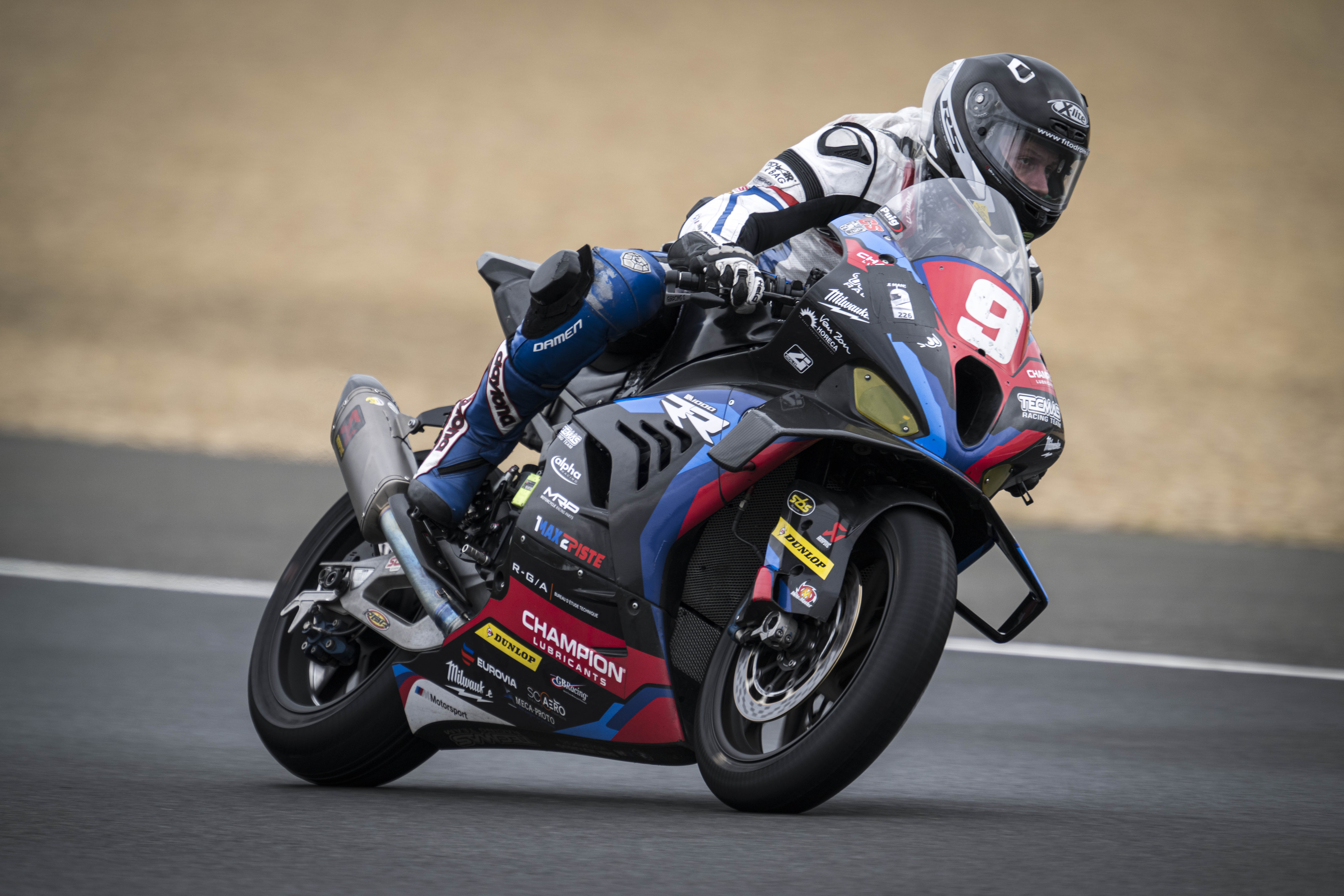 Le Mans (FRA), 02nd April 2024. BMW Motorrad Motorsport, FIM Endurance World Championship, 24 Heures Motos Private Test , TECMAS MRP BMW RACING TEAM, #9 BMW S 1000 RR, Jan Buehn (GER), Kenny Foray (FRA), ARBEL Loïc (FRA).