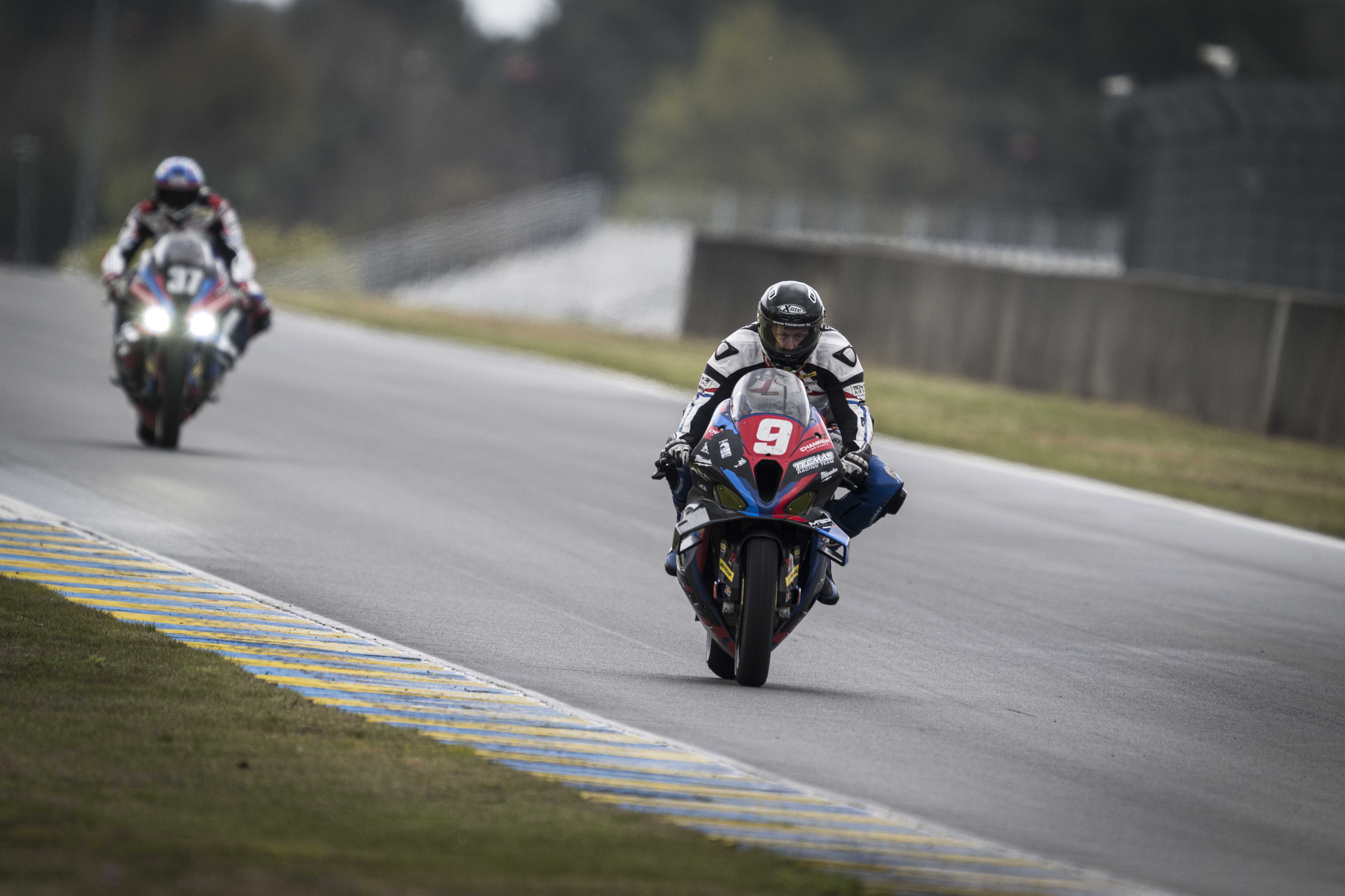 Le Mans (FRA), 02nd April 2024. BMW Motorrad Motorsport, FIM Endurance World Championship, 24 Heures Motos Private Test , TECMAS MRP BMW RACING TEAM, #9 BMW S 1000 RR, Jan Buehn (GER), Kenny Foray (FRA), ARBEL Loïc (FRA).