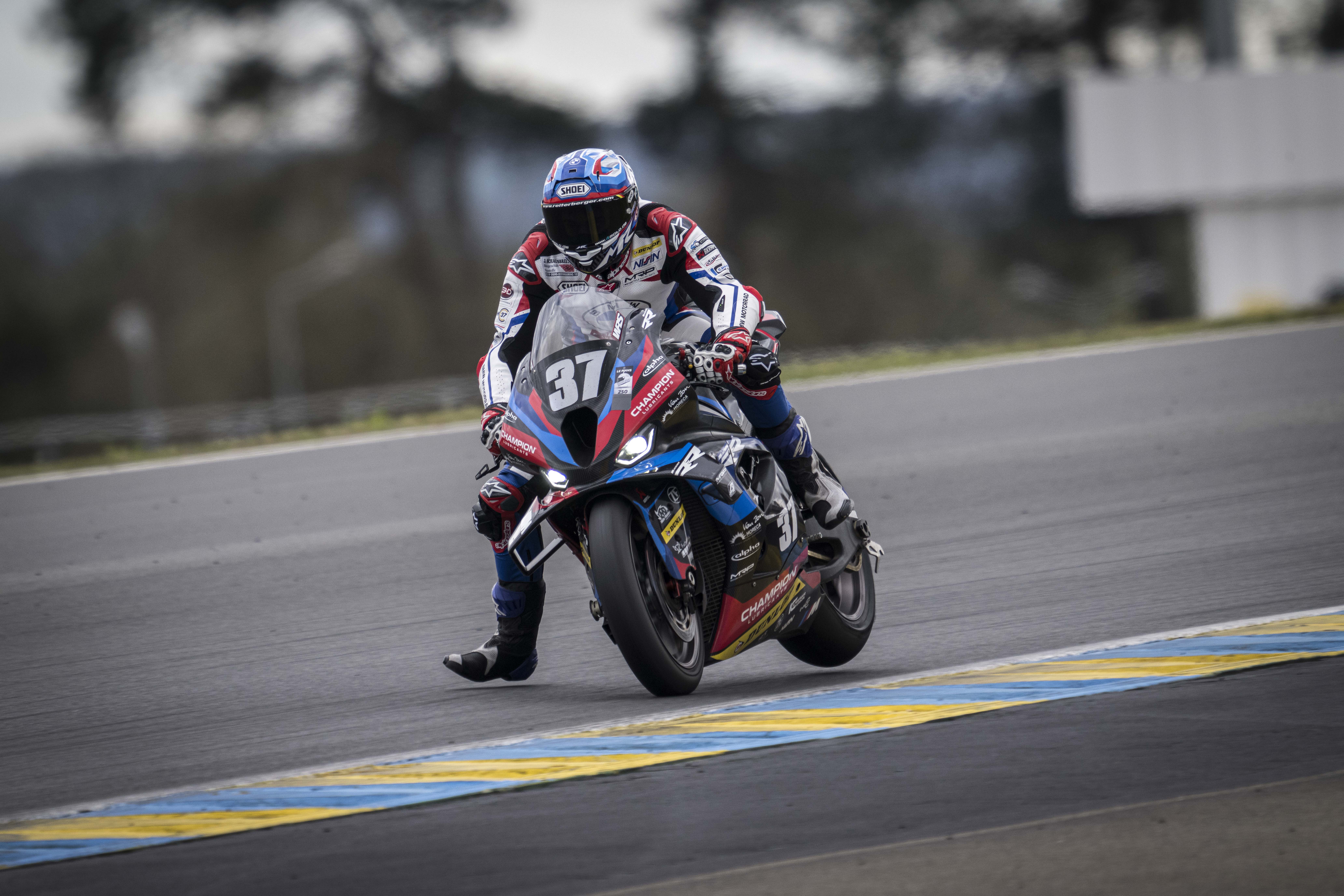 Le Mans (FRA), 03rd April 2024. BMW Motorrad Motorsport, FIM Endurance World Championship, 24 Heures Motos Private Test , BMW Motorrad World Endurance Team, #37 BMW M 1000 RR, Markus Reiterberger (GER), Ilya Mikhalchik (UKR), Sylvain Guintoli (FRA).