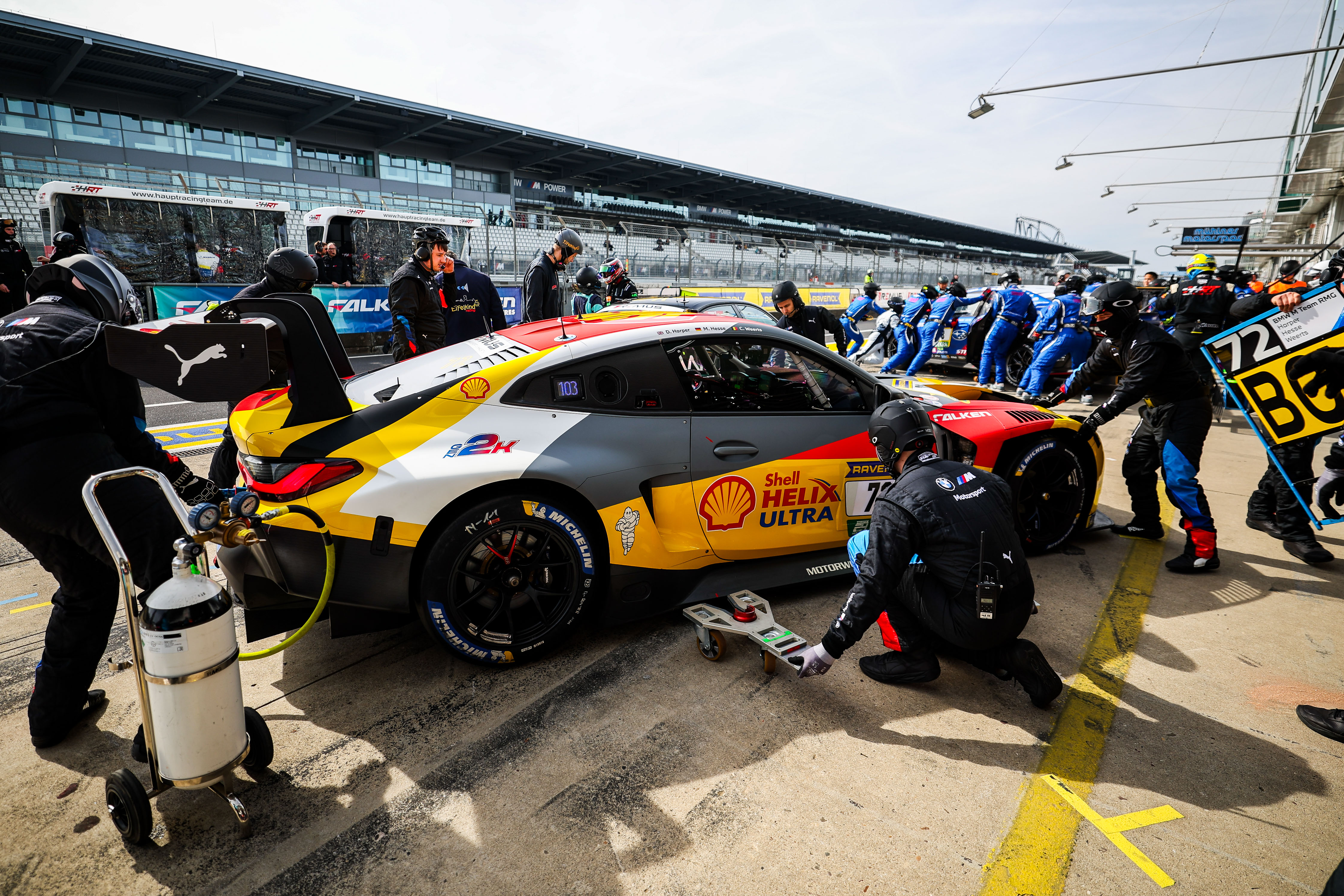 Nürburgring (GER), 13-14 April 2024. 24h Nürburgring Qualifiers, Nordschleife, #72 BMW M4 GT3, BMW M Team RMG, Gen2K, Dan Harper, Max Hesse, Charles Weerts, Shell.