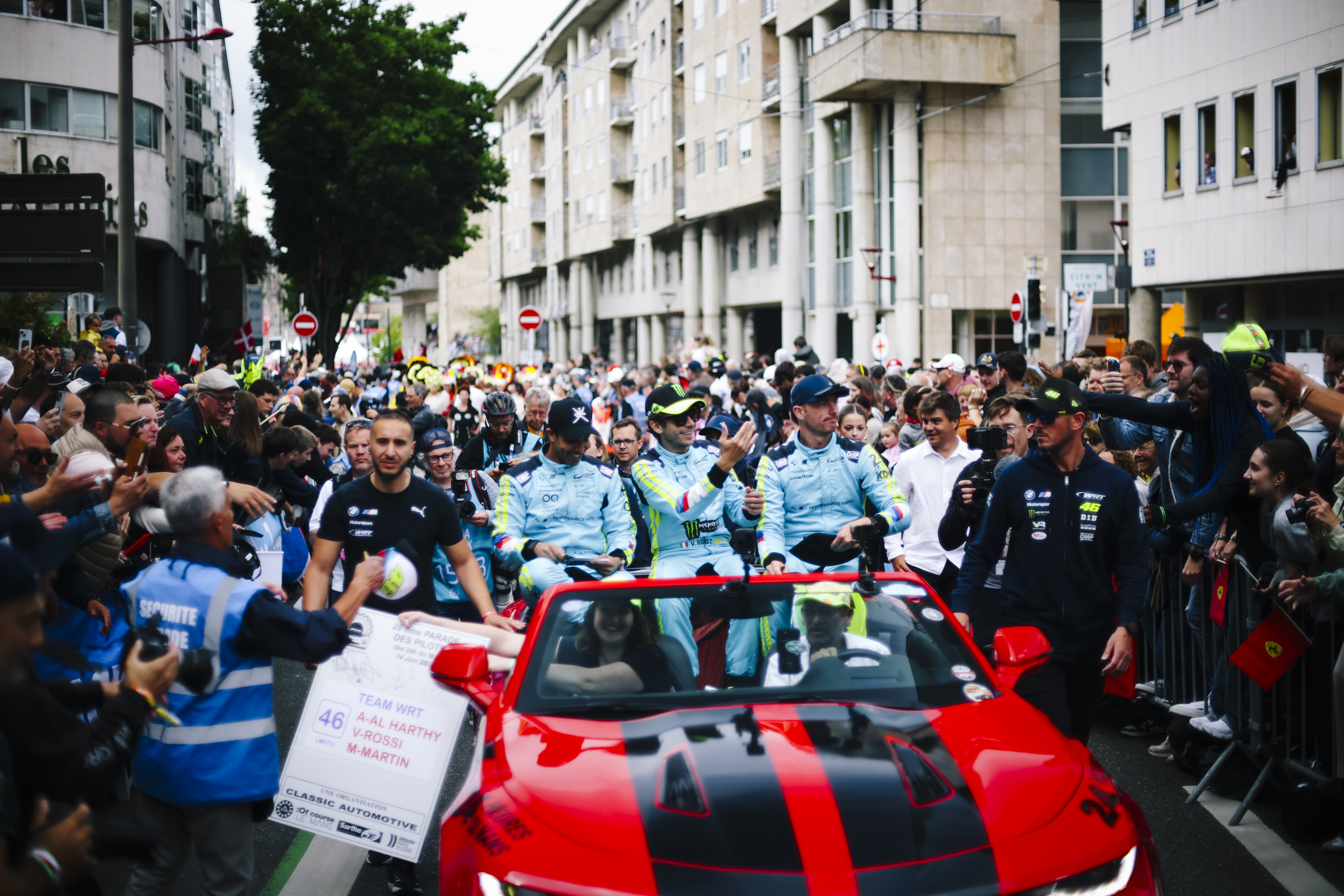 Le Mans (FRA), 7-16 June 2024. FIA World Endurance Championship, 24h Le Mans, Team WRT, LMGT3, #46 BMW M4 GT3, Maxime Martin, Valentino Rossi, Ahmad Al Harthy, Drivers Parade.
