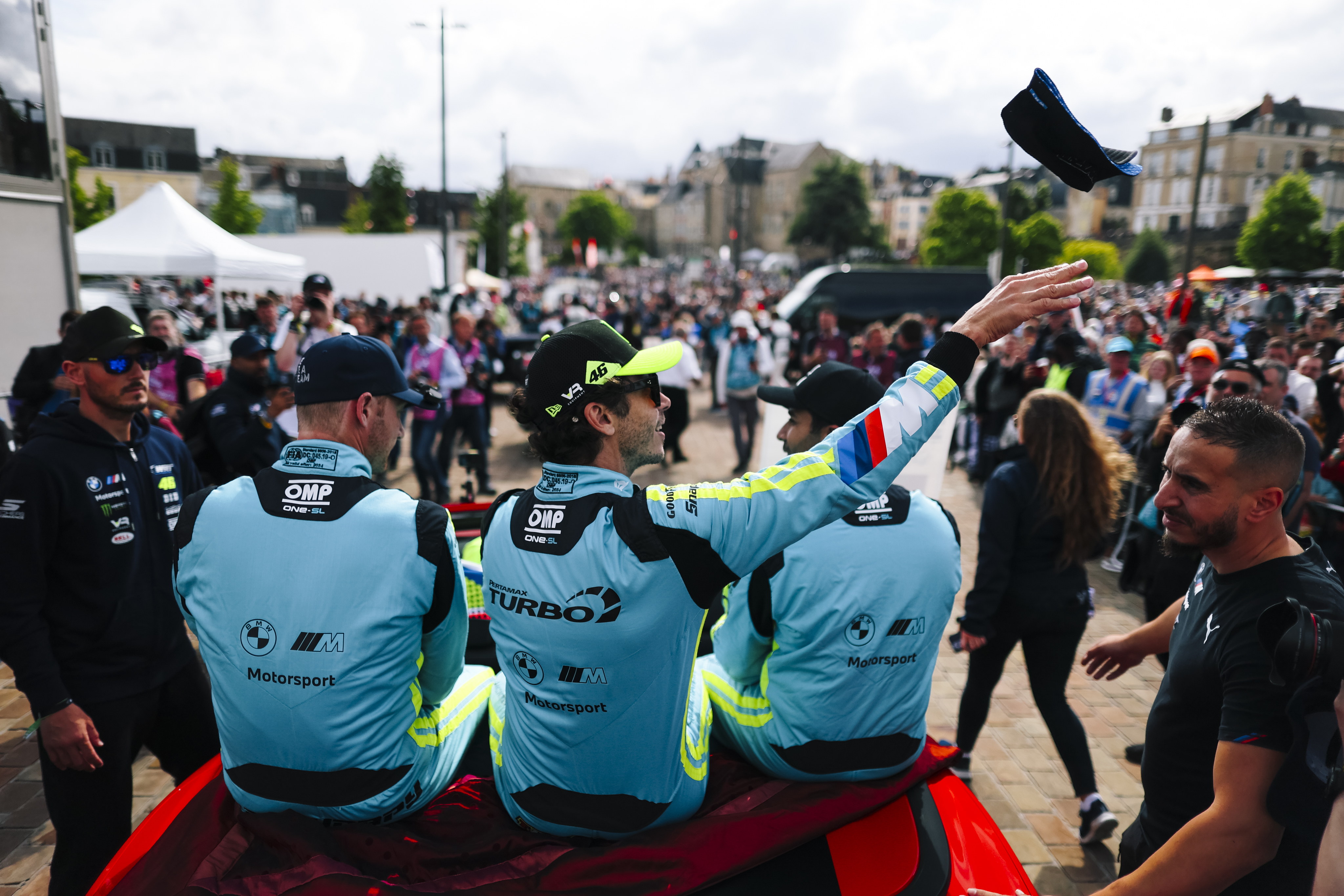 Le Mans (FRA), 7-16 June 2024. FIA World Endurance Championship, 24h Le Mans, Team WRT, LMGT3, #46 BMW M4 GT3, Maxime Martin, Valentino Rossi, Ahmad Al Harthy, Drivers Parade.