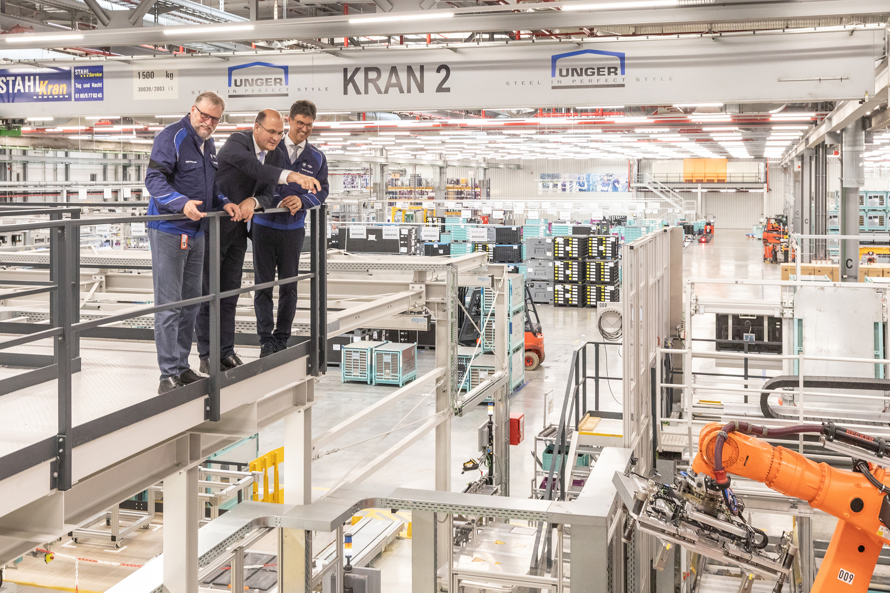 BMW Group Werk Regensburg: Der Bayerische Staatsminister der Finanzen und für Heimat, Albert Füracker, MdL, informierte sich bei Werkleiter Armin Ebner über die aktuelle Situation des Regensburger BMW Group Standorts und besichtigte die Produktion von Hochvoltbatterien für Elektrofahrzeuge sowie die Fahrzeugmontage. (06/2024)