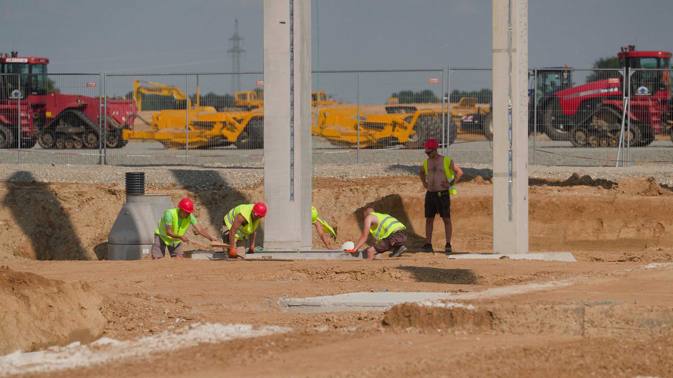 Die Bauarbeiten für den neuen BMW Group Standort in Irlbach-Straßkirchen schreiten voran und die ersten Stützen für den Hochbau wurden gestellt (Stand: Juni 2024). (06/2024)
