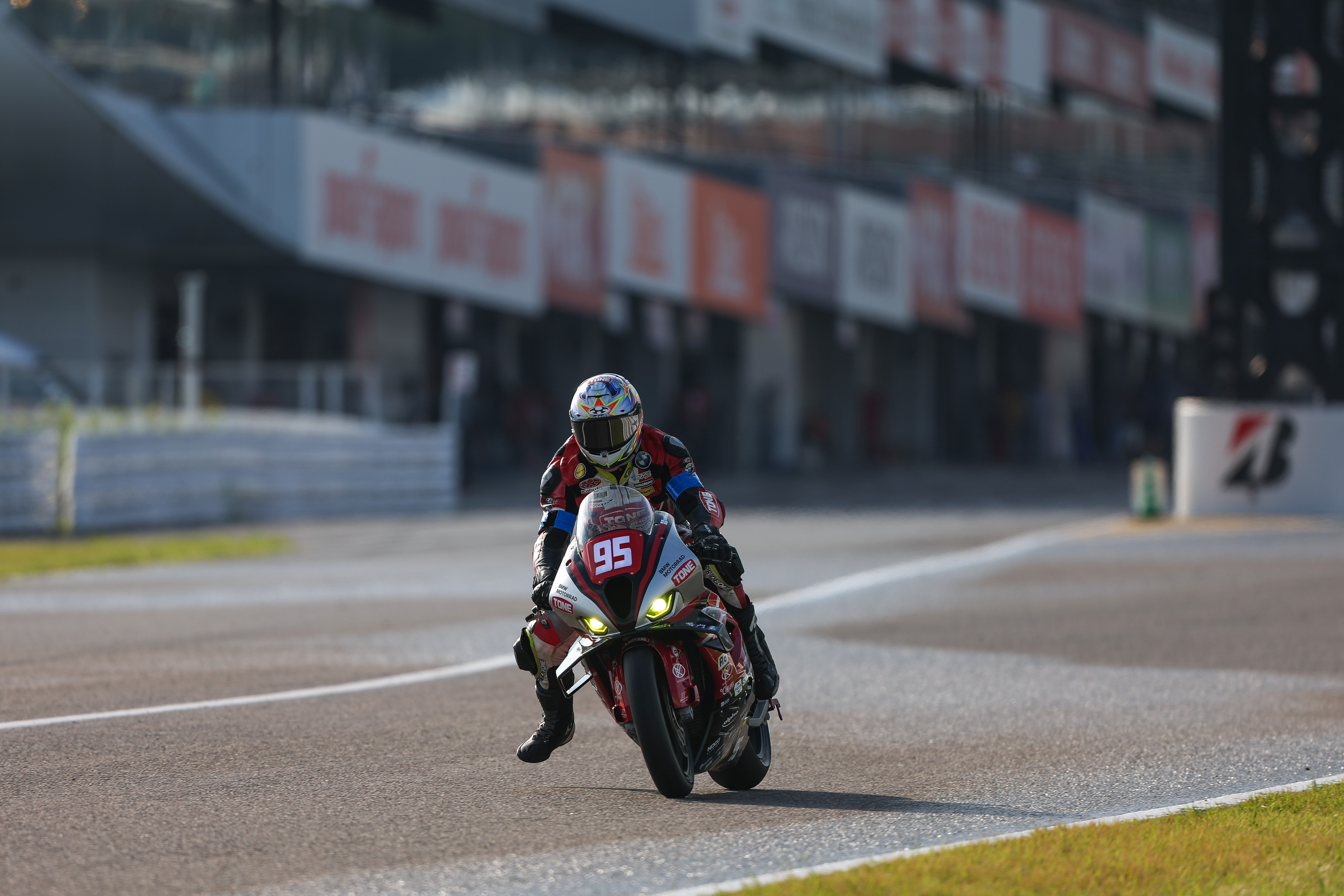 Suzuka (JPN), 17th to 21st July 2024. BMW Motorrad Motorsport, FIM Endurance World Championship FIM EWC, Suzuka 8 Hours, Superstock, #95 BMW M 1000 RR, TONE RT SYNCEDGE 4413 BMW, Tomoya Hoshino (JPN), Ainosuke Yoshida (JPN), Hannes Soomer (EST).