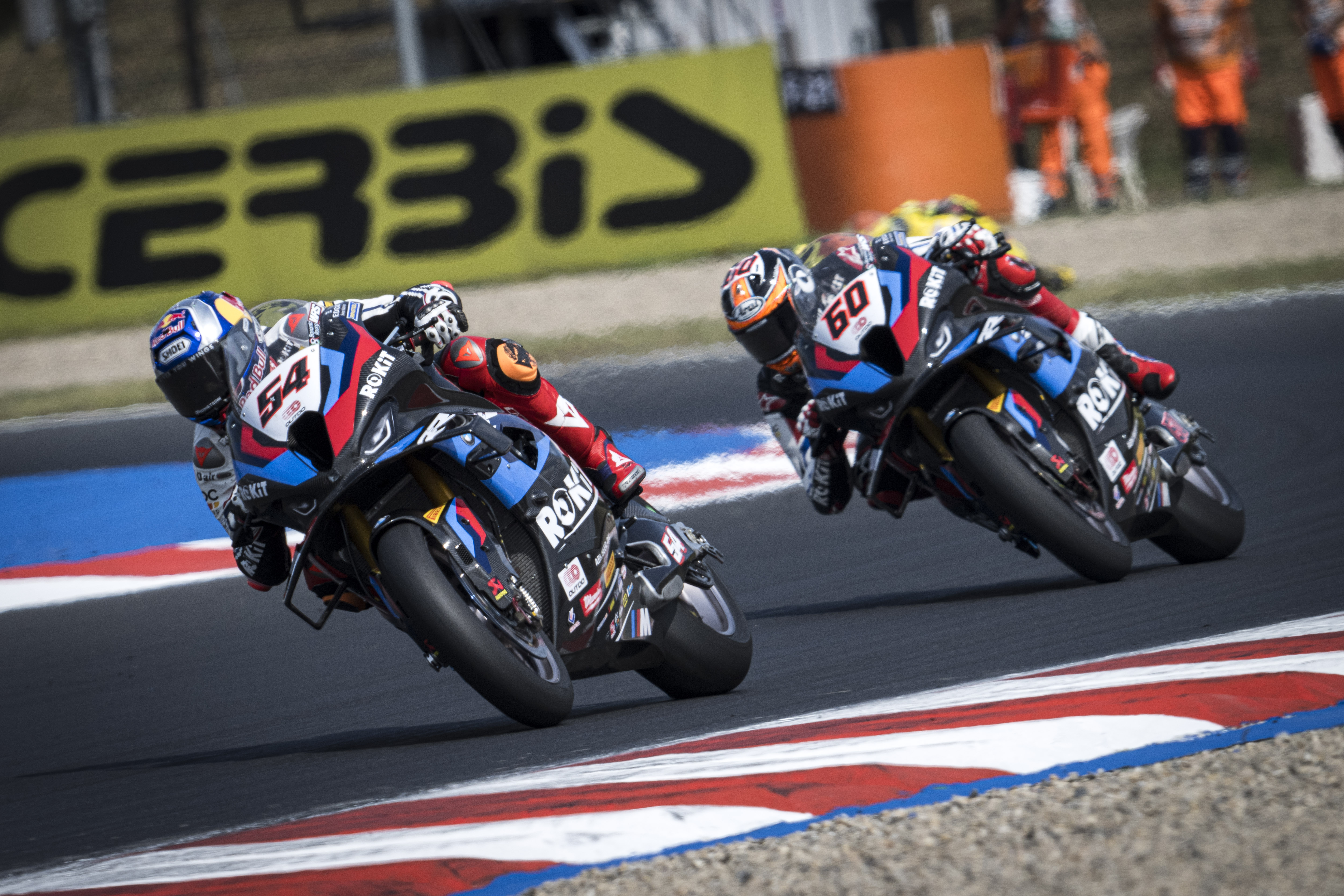 Most (CZE), 18th to 21st July 2024. BMW Motorrad Motorsport, FIM Superbike World Championship WorldSBK, ROKiT BMW Motorrad WorldSBK Team, #54 BMW M 1000 RR, Toprak Razgatlioglu (TUR), #60 BMW M 1000 RR, Michael van der Mark (NED).