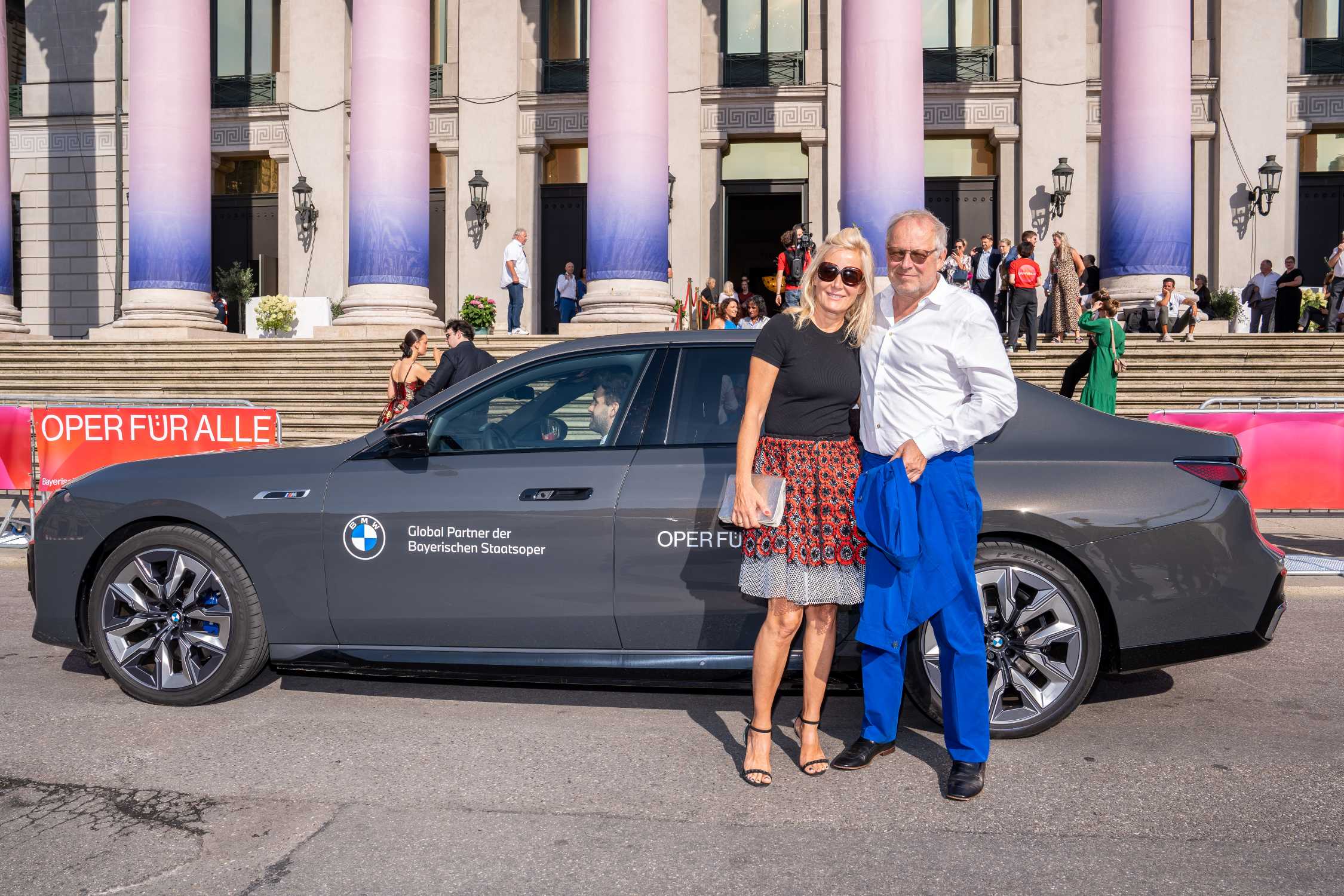 BMW und die Bayerische Staatsoper laden ein zu Oper für alle 2024 am 27. Juli auf dem Max-Joseph-Platz in München. Axel Milberg (Schauspieler) und Judith Milberg (Künstlerin). Foto: ProjectImages / Gerald Matzka © BMW AG (07/2024)
