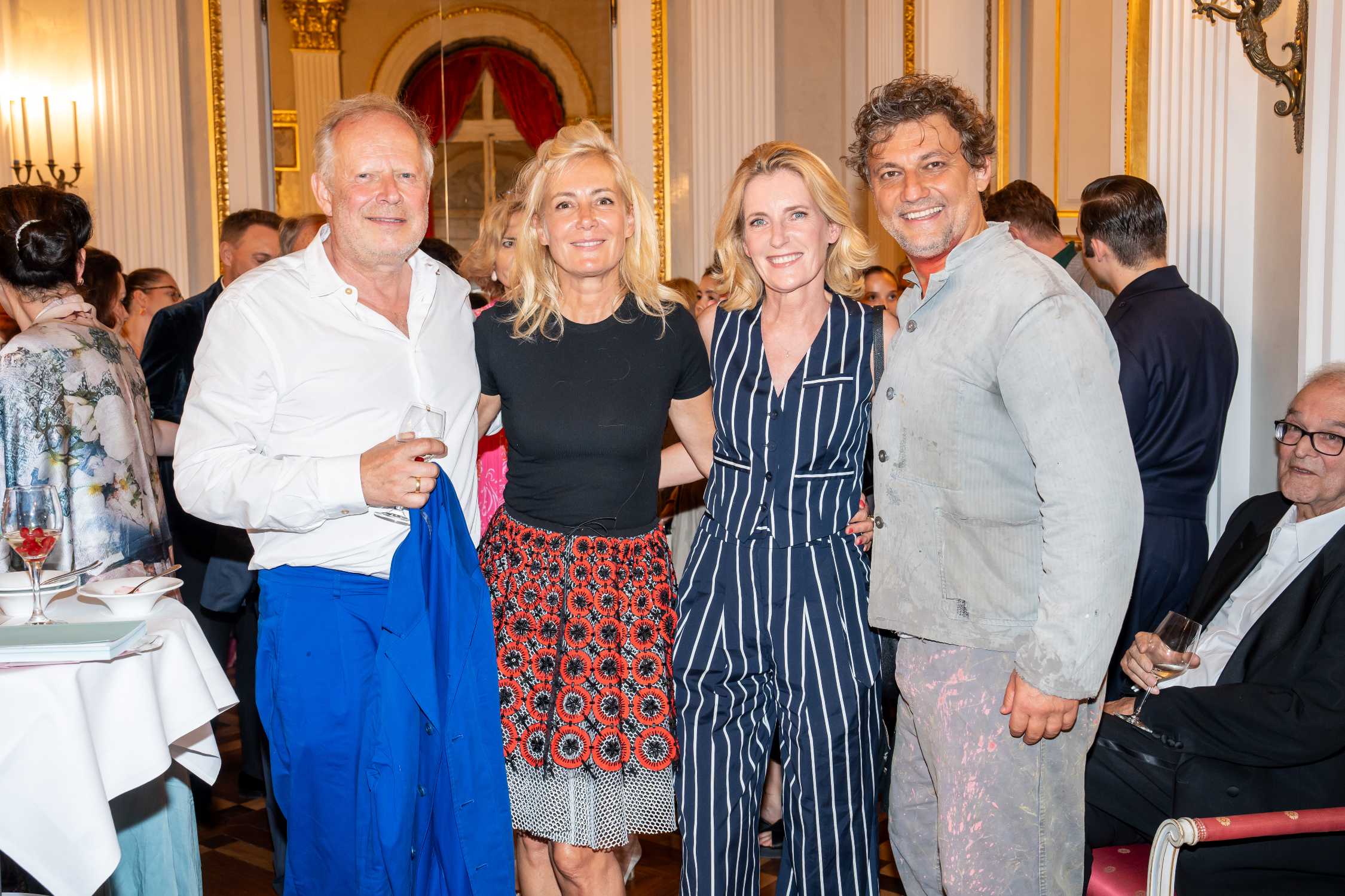 BMW und die Bayerische Staatsoper laden ein zu Oper für alle 2024 am 27. Juli auf dem Max-Joseph-Platz in München. V.l.n.r.: Axel Milberg (Schauspieler), Judith Milberg (Künstlerin), Maria Furtwängler (Schauspielerin) und Jonas Kaufmann (Opernsänger, als Mario Cavaradossi in ‚Tosca‘). Foto: ProjectImages / Gerald Matzka © BMW AG (07/2024)