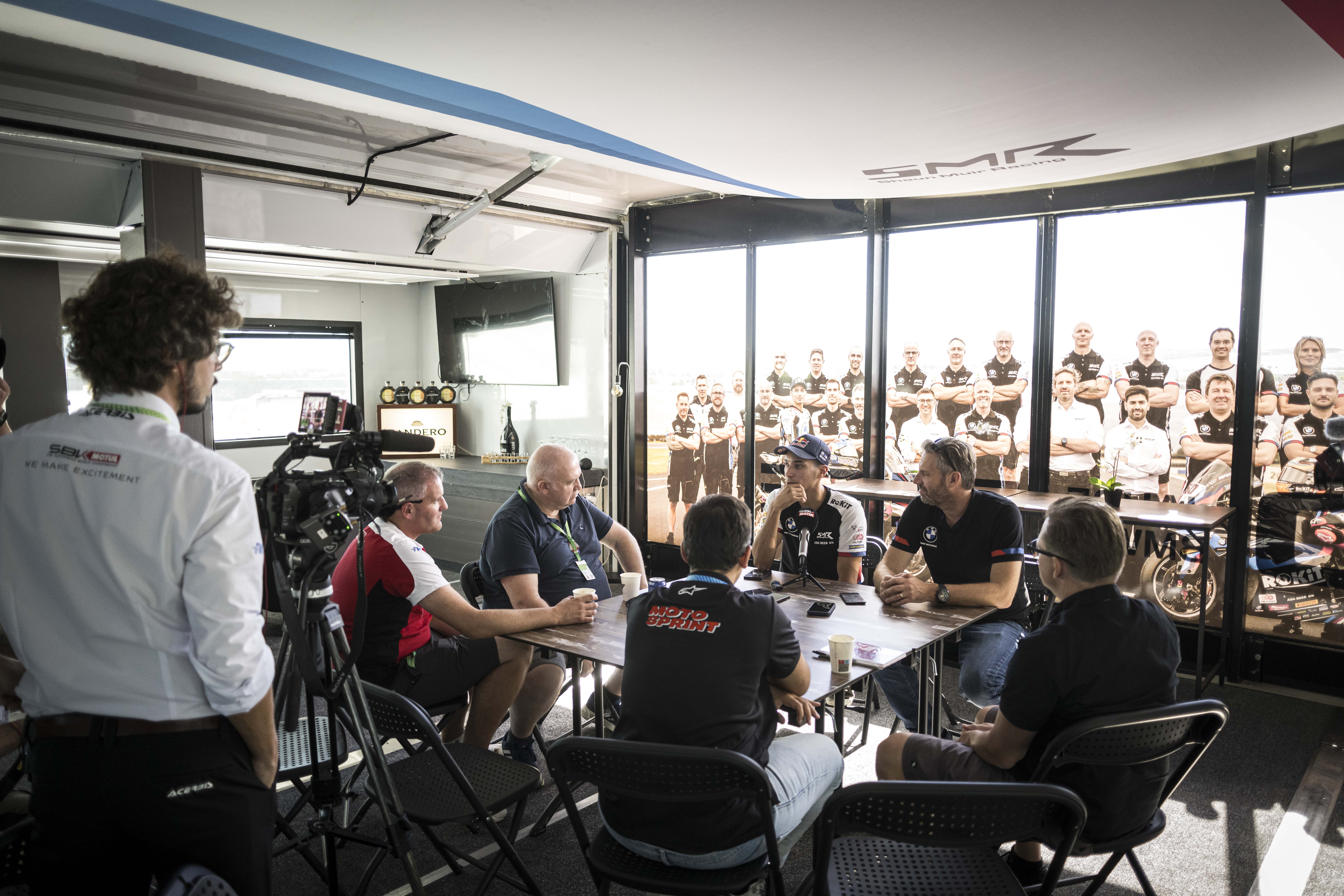 26th September 2024. Aragon (SPA). FIM Superbike World Championship ROKiT BMW Motorrad WorldSBK Team, BMW M 1000 RR, Toprak Razgatlıoğlu #54 (TUR) with Marc Bongers, BMW Motorrad Motorsport Sporting Director.