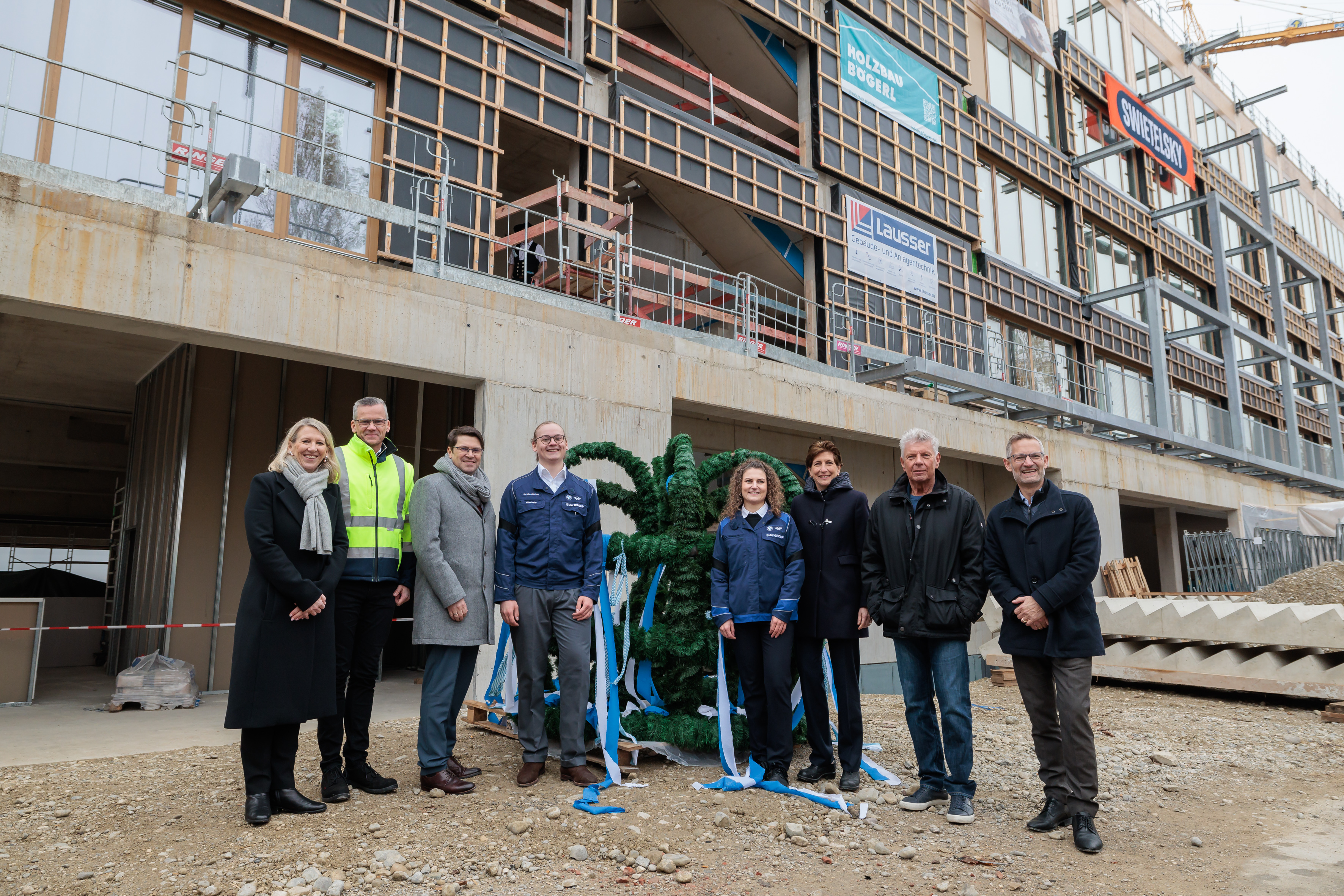 Richtfest BMW Group Talent Campus München, 8.11.2024. Dr. Nicole Haft-Zboril, Dr. Peter Weber, Dr. Martin Kimmich, Kilian Dreier, Melanie Arzberger, Ilka Horstmeier, Dieter Reiter, Moritz Kippenberger