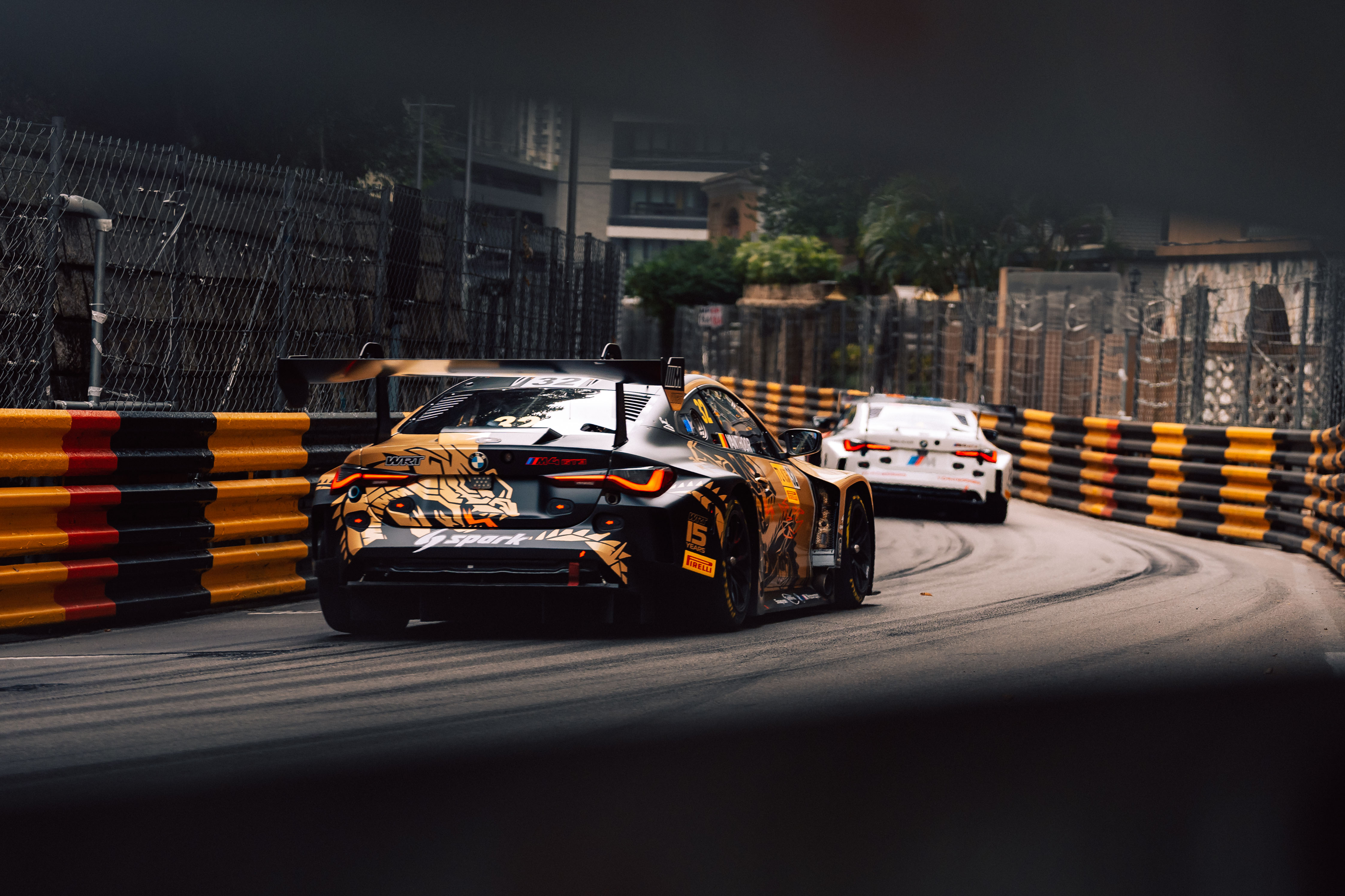 Macau (CHN), 13-17 November 2024. FIA GT World Cup, Guia Circuit, #1 BMW M4 GT3, TORO Racing powered by MCG, Raffaele Marciello, #32 BMW M4 GT3, Team WRT, Dries Vanthoor.