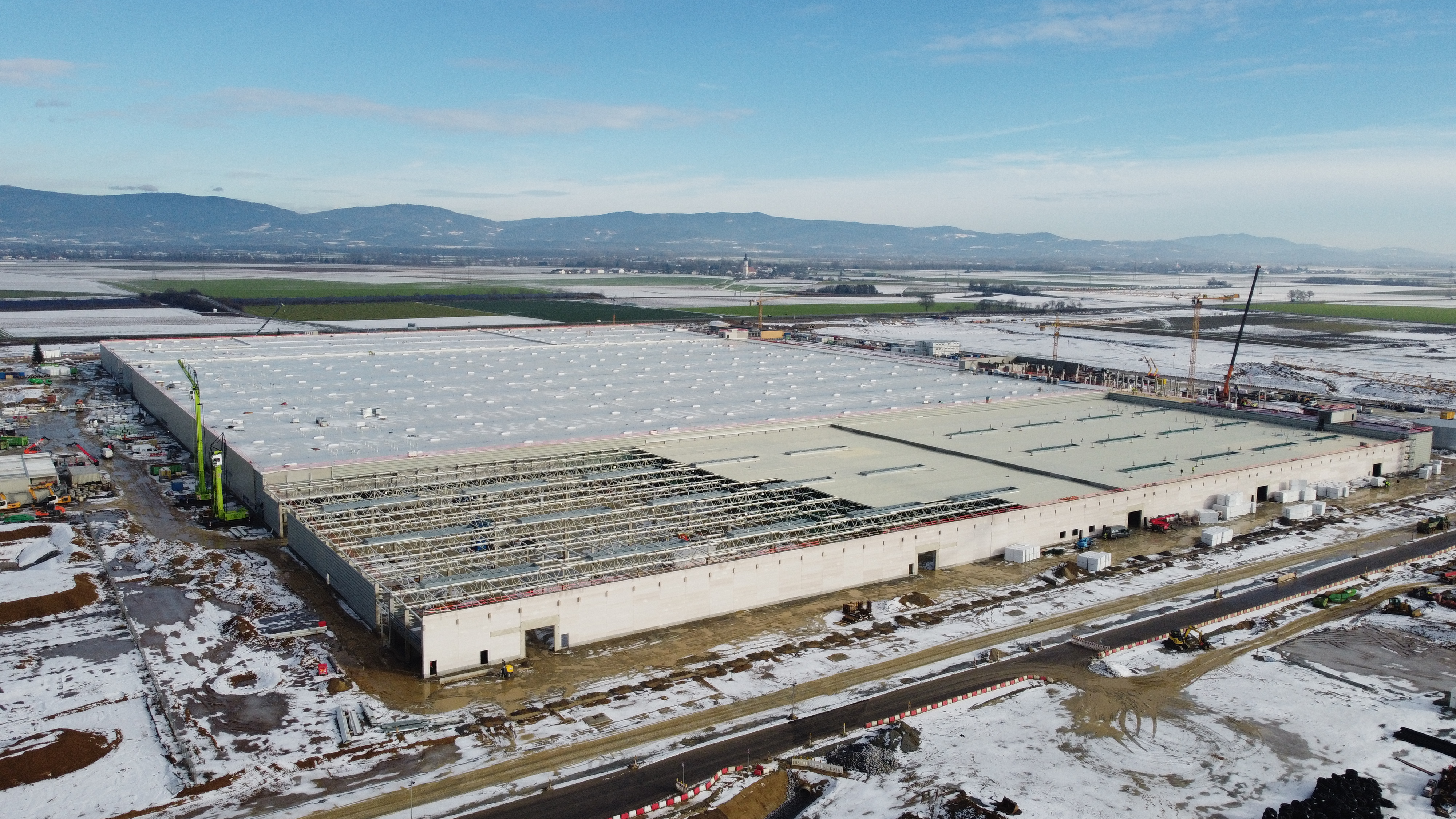 Luftbild des Baufortschritts des zukünftigen Montagewerks für Hochvoltbatterien der BMW Group in Irlbach-Straßkirchen (Stand: KW 2/2025). (01/2025)