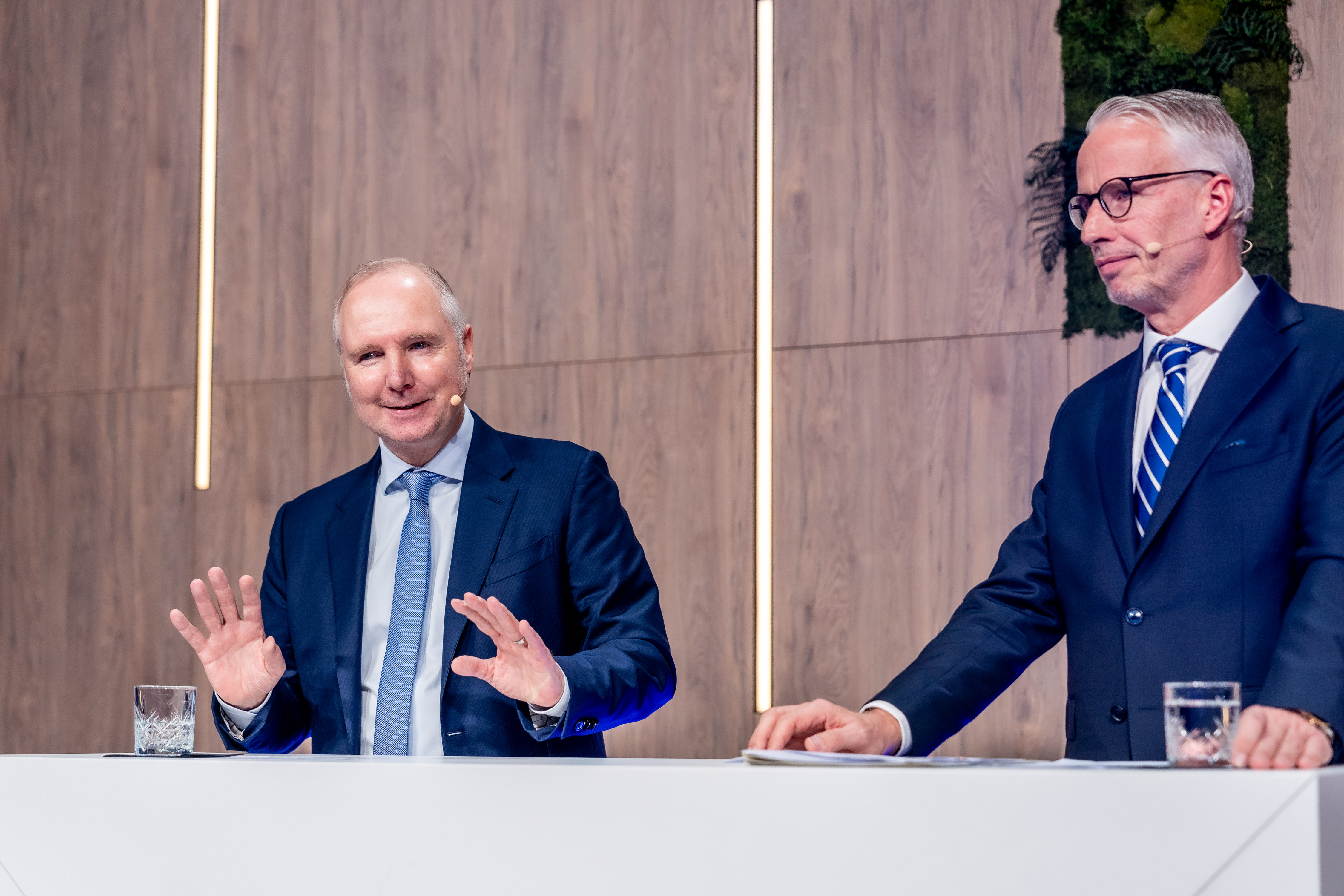 Münchens schönstes Autohaus: BMW München feiert Wiedereröffnung nach Umbauphase. Von rechts nach links: Bernd Döpke, Leiter von BMW München, und Jochen Goller, Mitglied des Vorstandes der BMW AG