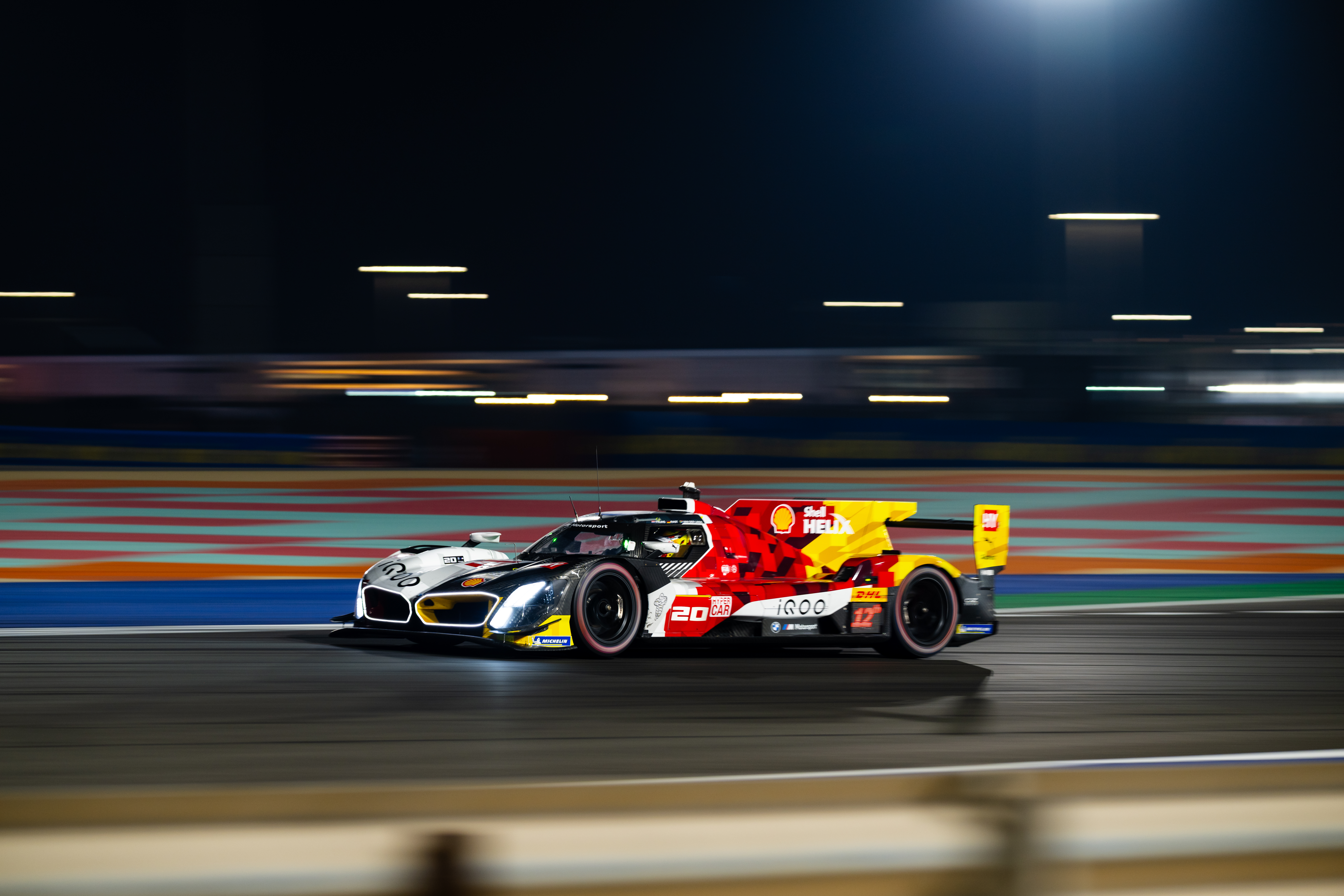 Lusail (QAT), 21st to 22nd February 2025. BMW M Motorsport, FIA World Endurance Championship, FIA WEC, Official Prologue, Qatar, BMW M Team WRT, Hypercar, LMDh, hybrid, #20 Shell BMW M Hybrid V8, Sheldon van der Linde, René Rast, Robin Frijns.