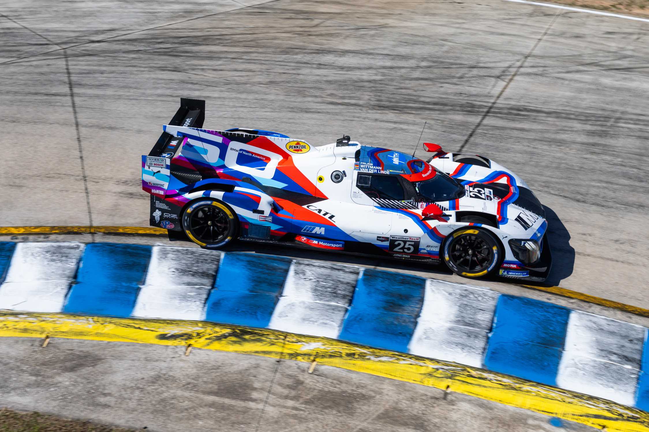 Sebring (USA), 13th to 15th March 2025. IMSA WeatherTech SportsCar Championship, IWSC, Twelve Hours 12h of Sebring, GTP, BMW M Team RLL, #25 BMW M Hybrid V8, Sheldon van der Linde, Marco Wittmann, Robin Frijns,