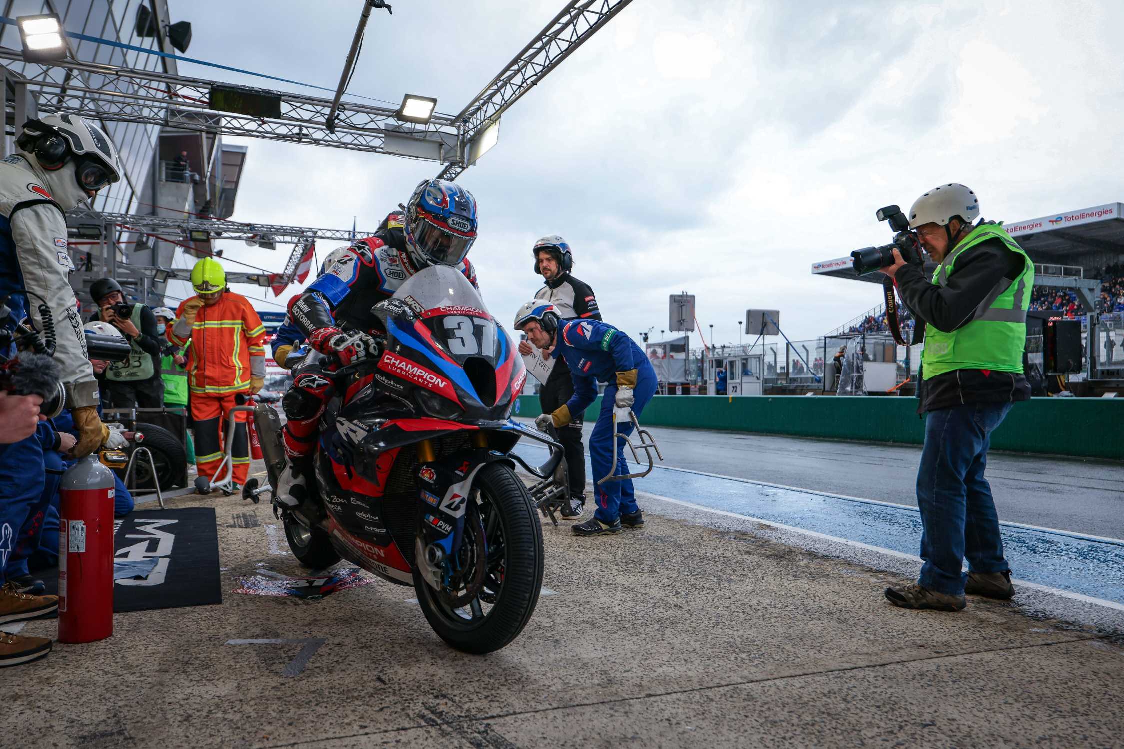 Le Mans (FRA), 16th to 20th April 2025. BMW Motorrad Motorsport, FIM Endurance World Championship, FIM EWC, 24h Le Mans Motos, EWC class, BMW Motorrad World Endurance Team, #37 BMW M 1000 RR, Markus Reiterberger (GER), Sylvain Guintoli (FRA), Steven Odendaal (RSA), Hannes Soomer (EST).