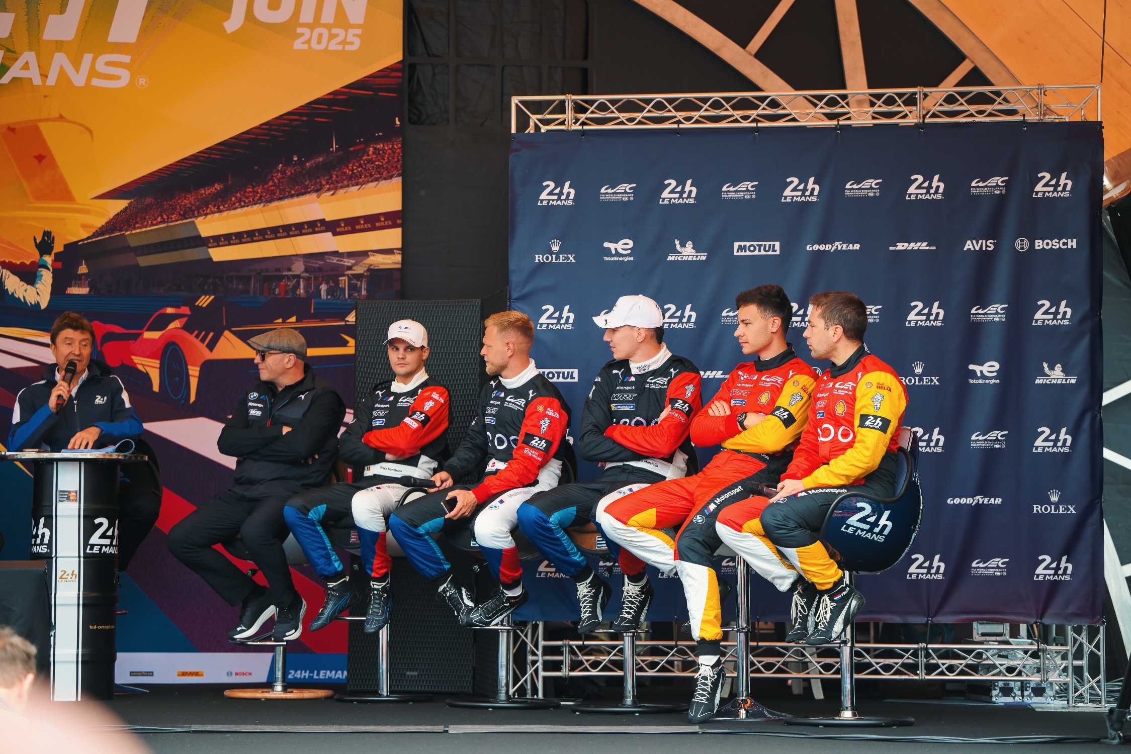 Le Mans (FRA), 6-7 June 2025. 24 Hours of Le Mans, FIA World Endurance Championship, FIA WEC, scrutineering, city centre, BMW M Team WRT, Dries Vanthoor, Kevin Magnussen, Raffaele Marciello, Robin Frijns, Sheldon van der Linde, Vincent Vosse.