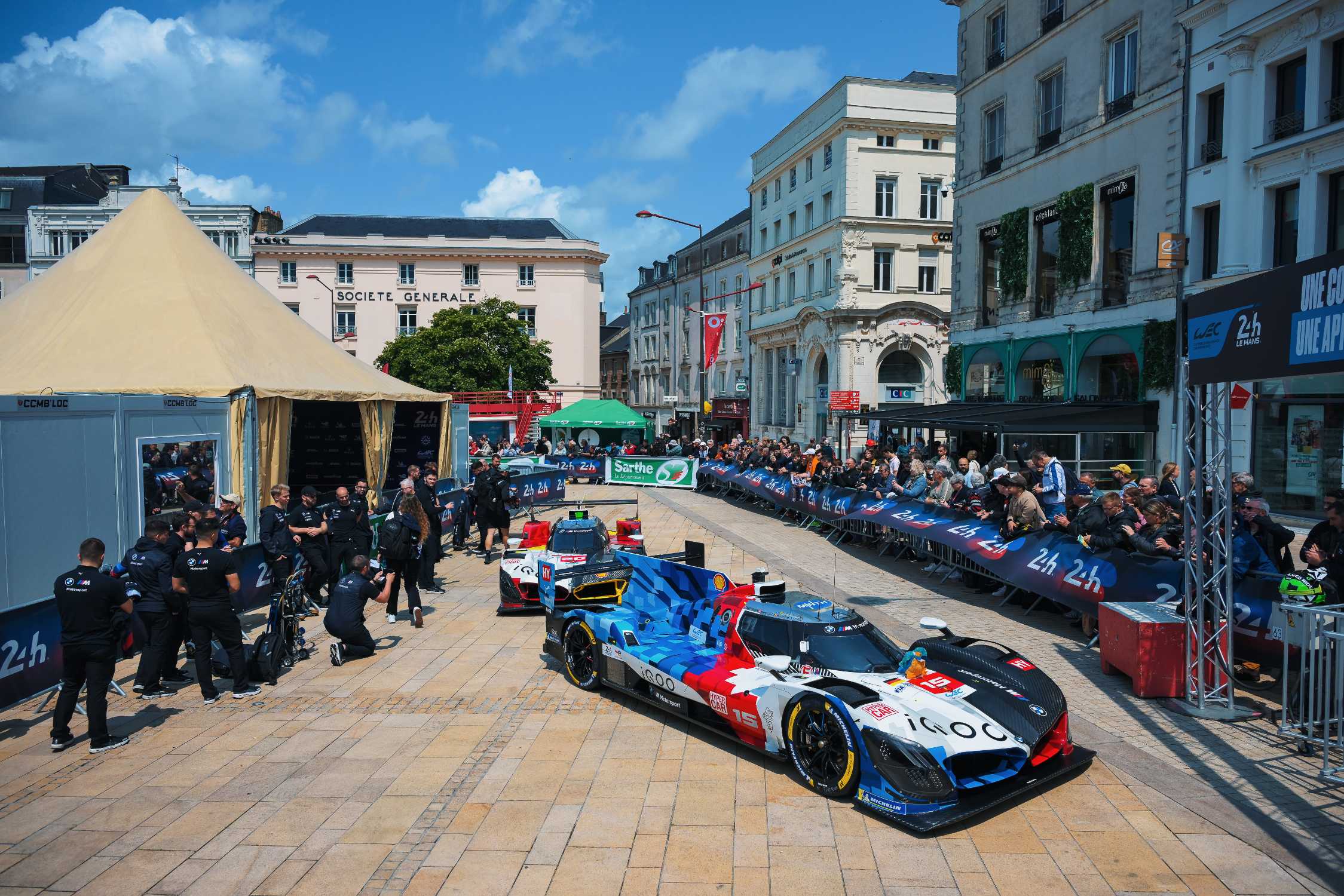 Le Mans (FRA), 6-7 June 2025. 24 Hours of Le Mans, FIA World Endurance Championship, FIA WEC, scrutineering, city centre, BMW M Team WRT, #15 BMW M ...