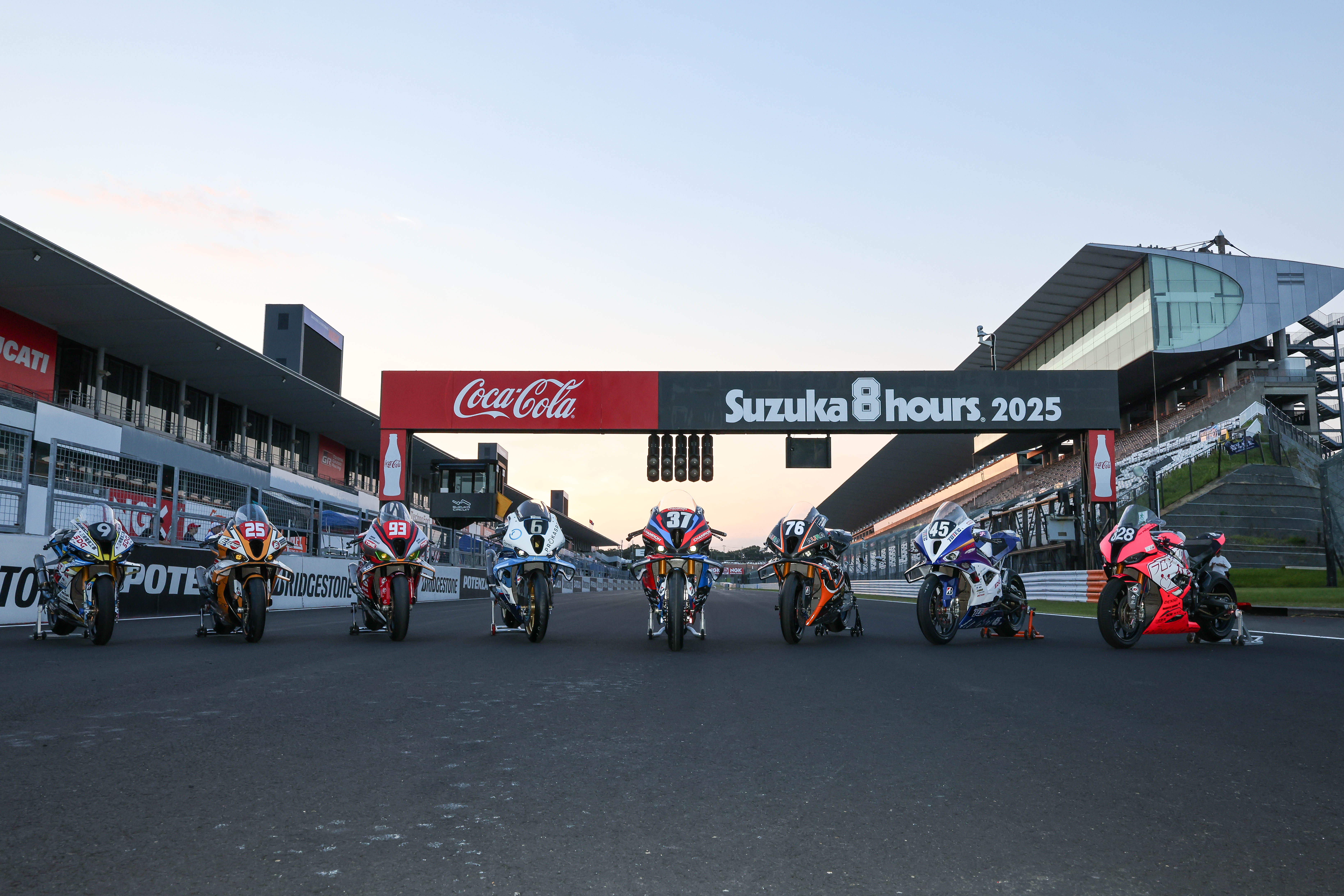 Suzuka (JPN), 30th July to 3rd August 2025. BMW Motorrad Motorsport, FIM Endurance World Championship, FIM EWC, Suzuka 8 Hours, EWC class, BMW Motorrad World Endurance Team, #37 BMW M 1000 RR, Markus Reiterberger (GER), Steven Odendaal (RSA), Michael van der Mark (NED) - ERC Endurance #6, #6 BMW M 1000 RR, Ilya Mikhalchik (UKR), Kenny Foray (FRA), David Checa (ESP) - SANMEI Team TARO PLUSONE with SDG, #9 BMW M 1000 RR, Taro Sekiguchi, Yuda Kamei, Tatsuya Nakamura (all JPN) - Team Étoile, #25 BMW M 1000 RR, Hikari Okubo, Kazuki Watanabe, Motoharu Ito (all JPN) - SHINSURYEN with TOTEC, #45 BMW M 1000 RR, Isami Higashimura, Shuichiro Nakamura, Hinata Nakajima (all JPN) - AutoRace Ube Racing Team, #76 BMW M 1000 RR, Naomichi Uramoto (JPN), Loris Baz (FRA), Davey Todd (GBR), Ivo Lopes (POR) - TONE Team 4413 EVA 02 BMW, #93 BMW M 1000 RR, Tomoya Hoshino (JPN), Ainosuke Yoshida (JPN), Leandro Mercado (ARG) - Team Frontier, #828 BMW S 1000 RR, Soushi Mihara, Ryosuke Katahira, Sho Hasegawa (all JPN)