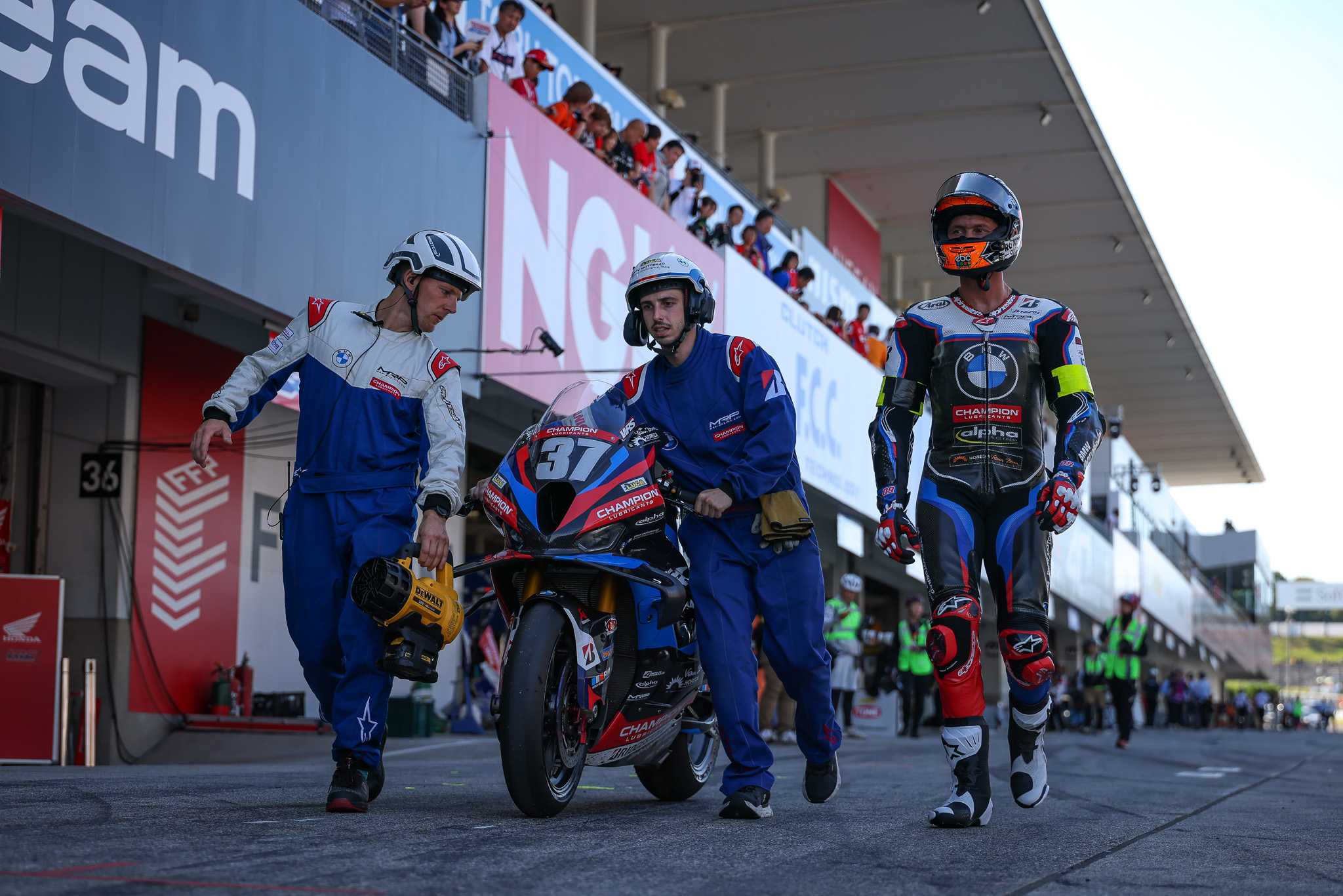 Suzuka (JPN), 30th July to 3rd August 2025. BMW Motorrad Motorsport, FIM Endurance World Championship, FIM EWC, Suzuka 8 Hours, EWC class, BMW Motorrad World Endurance Team, #37 BMW M 1000 RR, Markus Reiterberger (GER), Steven Odendaal (RSA), Michael van der Mark (NED).