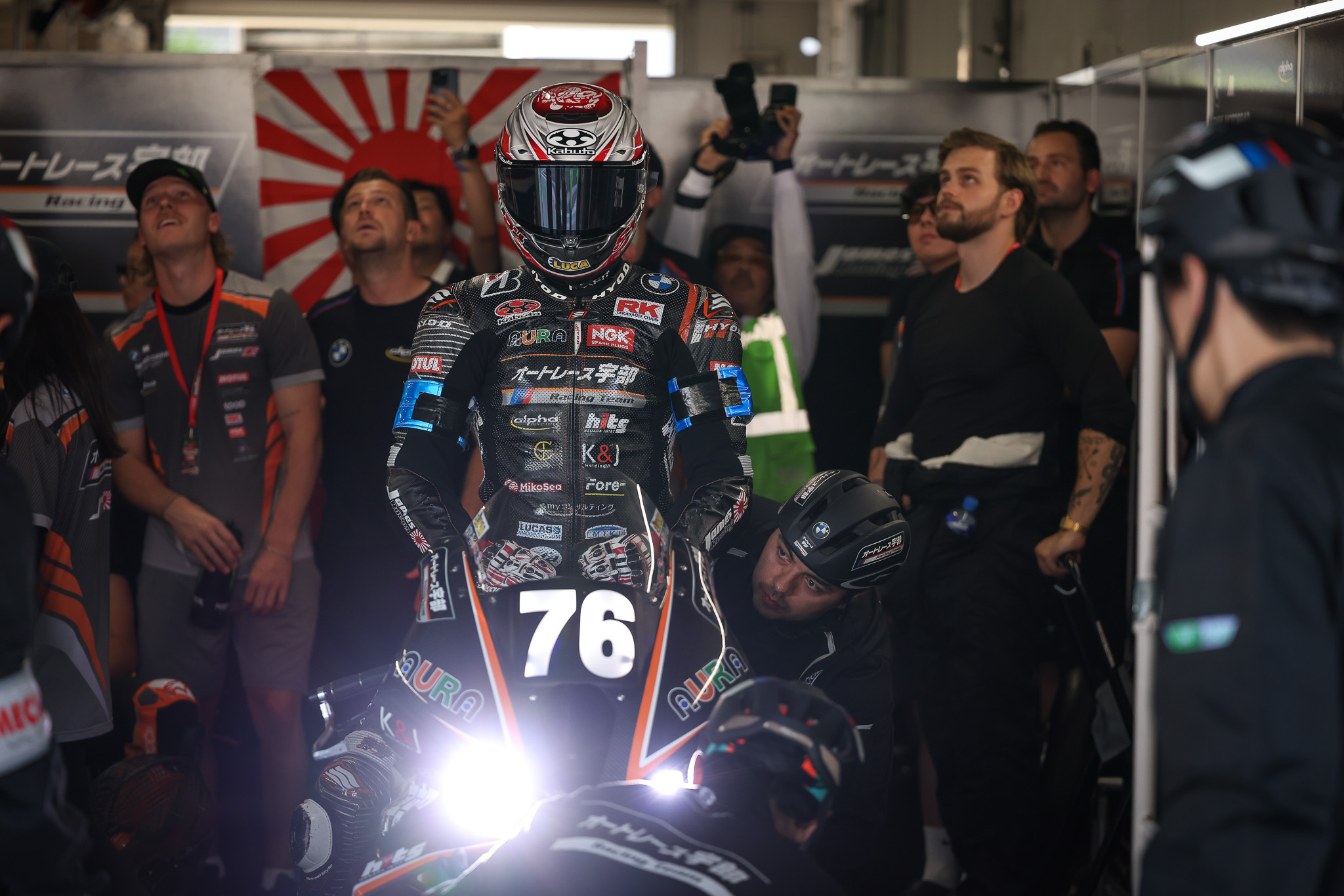 Suzuka (JPN), 30th July to 3rd August 2025. BMW Motorrad Motorsport, FIM Endurance World Championship, FIM EWC, Suzuka 8 Hours, EWC class, AutoRace Ube Racing Team, #76 BMW M 1000 RR, Naomichi Uramoto (JPN), Loris Baz (FRA), Davey Todd (GBR).