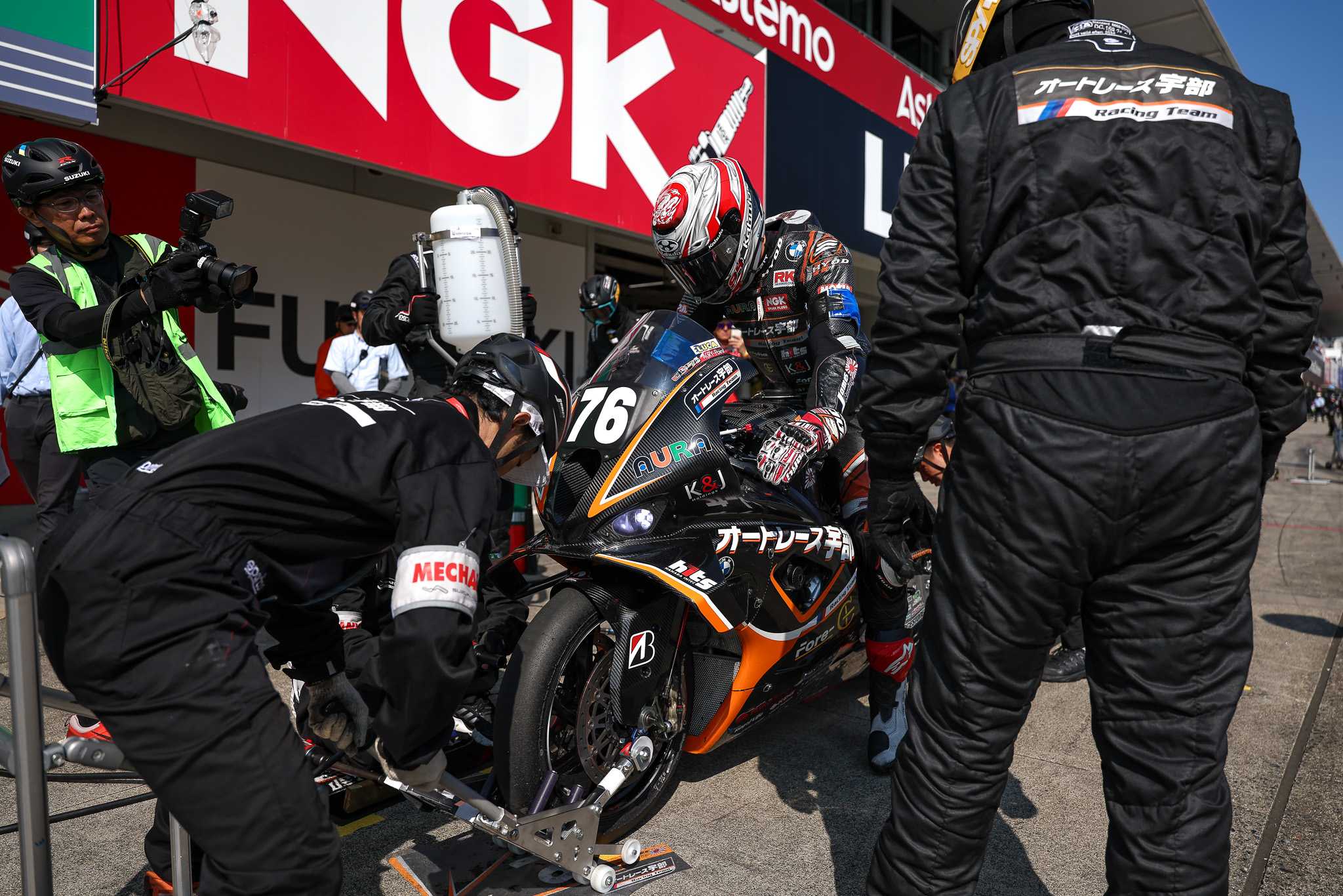 Suzuka (JPN), 30th July to 3rd August 2025. BMW Motorrad Motorsport, FIM Endurance World Championship, FIM EWC, Suzuka 8 Hours, EWC class, AutoRace Ube Racing Team, #76 BMW M 1000 RR, Naomichi Uramoto (JPN), Loris Baz (FRA), Davey Todd (GBR).