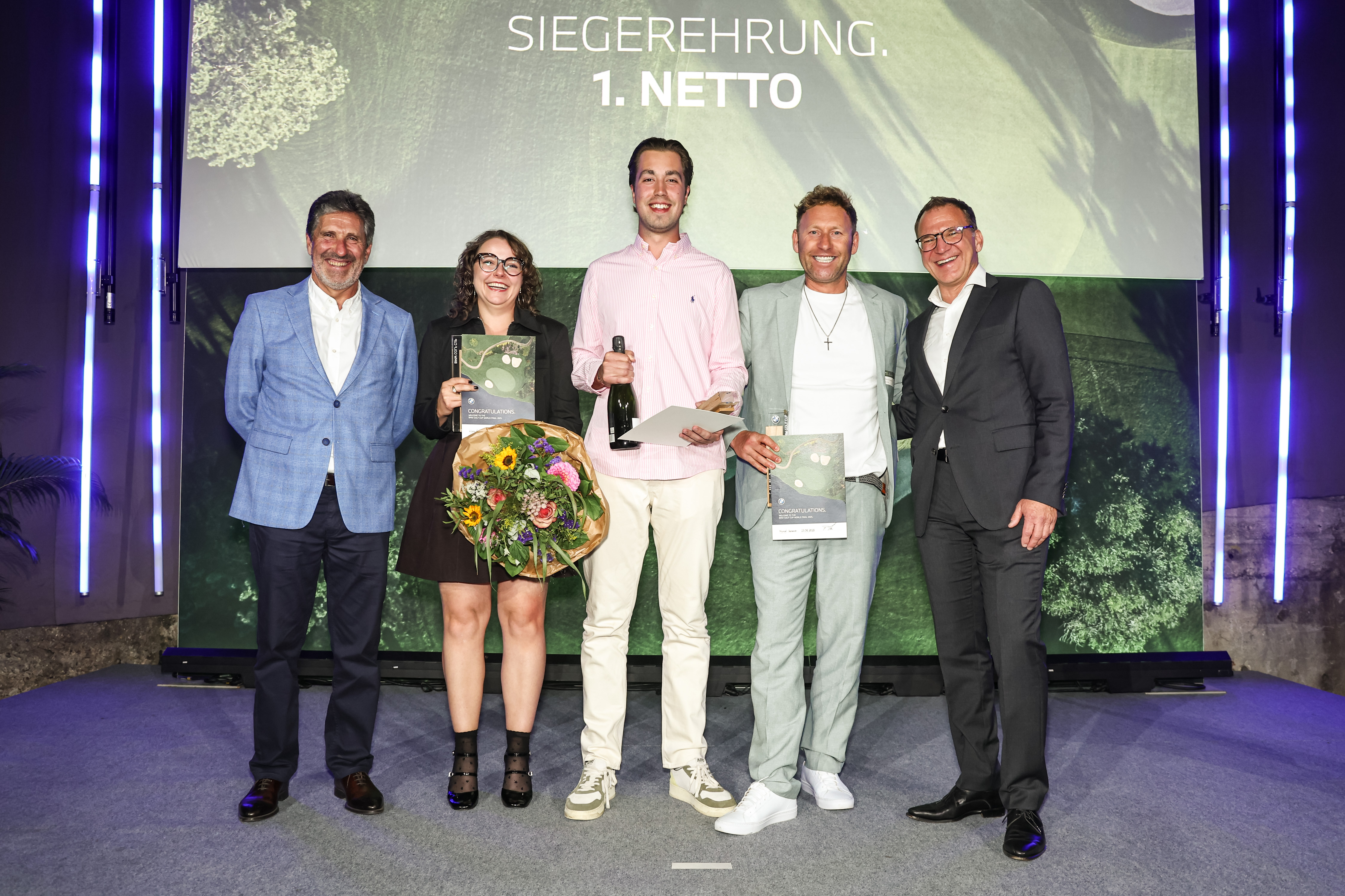BMW Golf Cup 2025 - Deutschlandfinale, GC München Eichenried. José María Olazábal, Klara Gebhard, Maximilian Brüdern, Marcel Hemmer, Florian Thunn (Leiter Vertrieb Gebrauchte Automobile BMW und MINI).