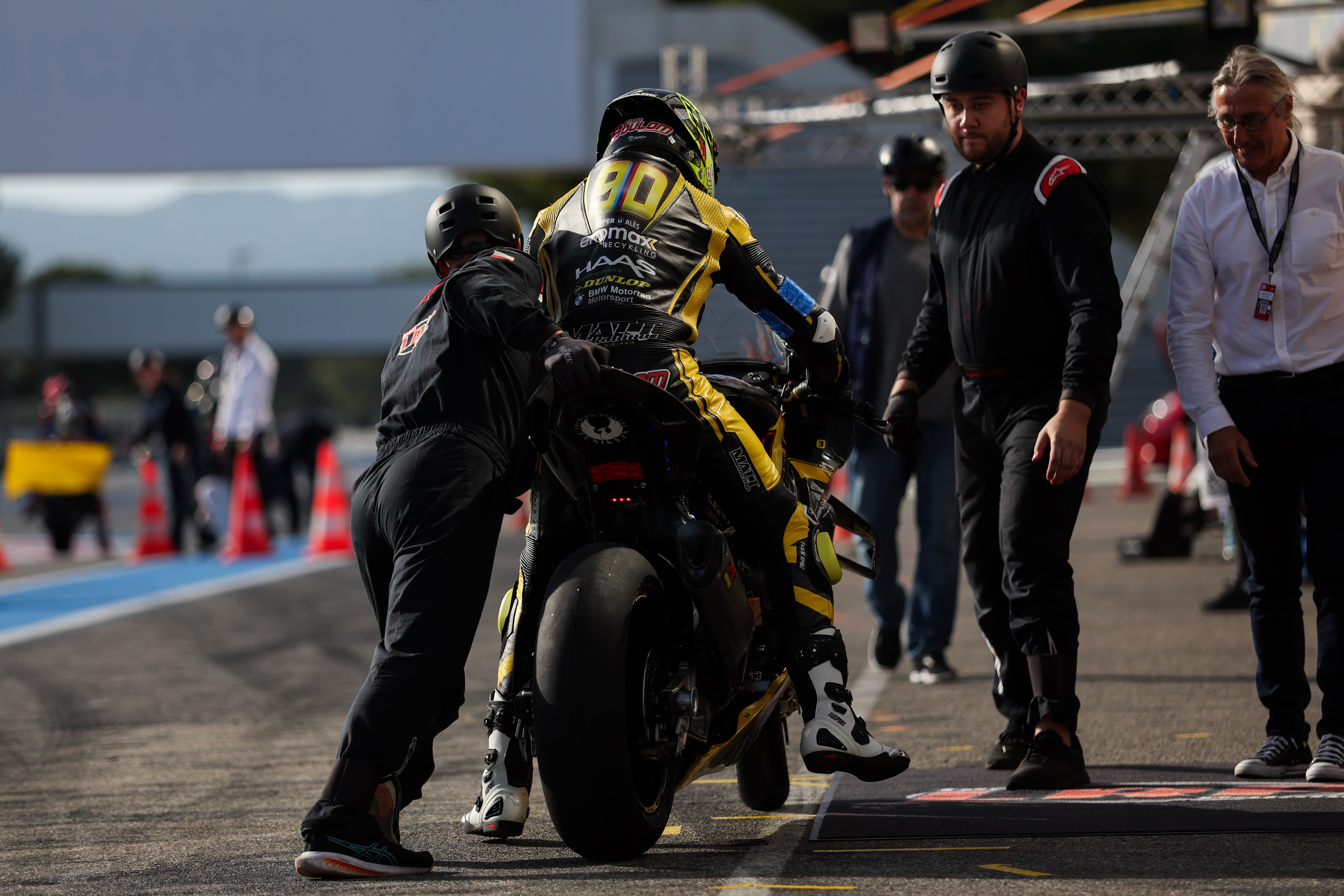 Le Castellet (FRA), 16th to 21st September 2025. BMW Motorrad Motorsport, FIM Endurance World Championship, FIM EWC, Circuit Paul Ricard, Bol d'Or, EWC class, #90 BMW M 1000 RR, Team LRP Poland, Enzo Boulom (FRA), Danny Webb (GBR), Marek Szkopek (POL).