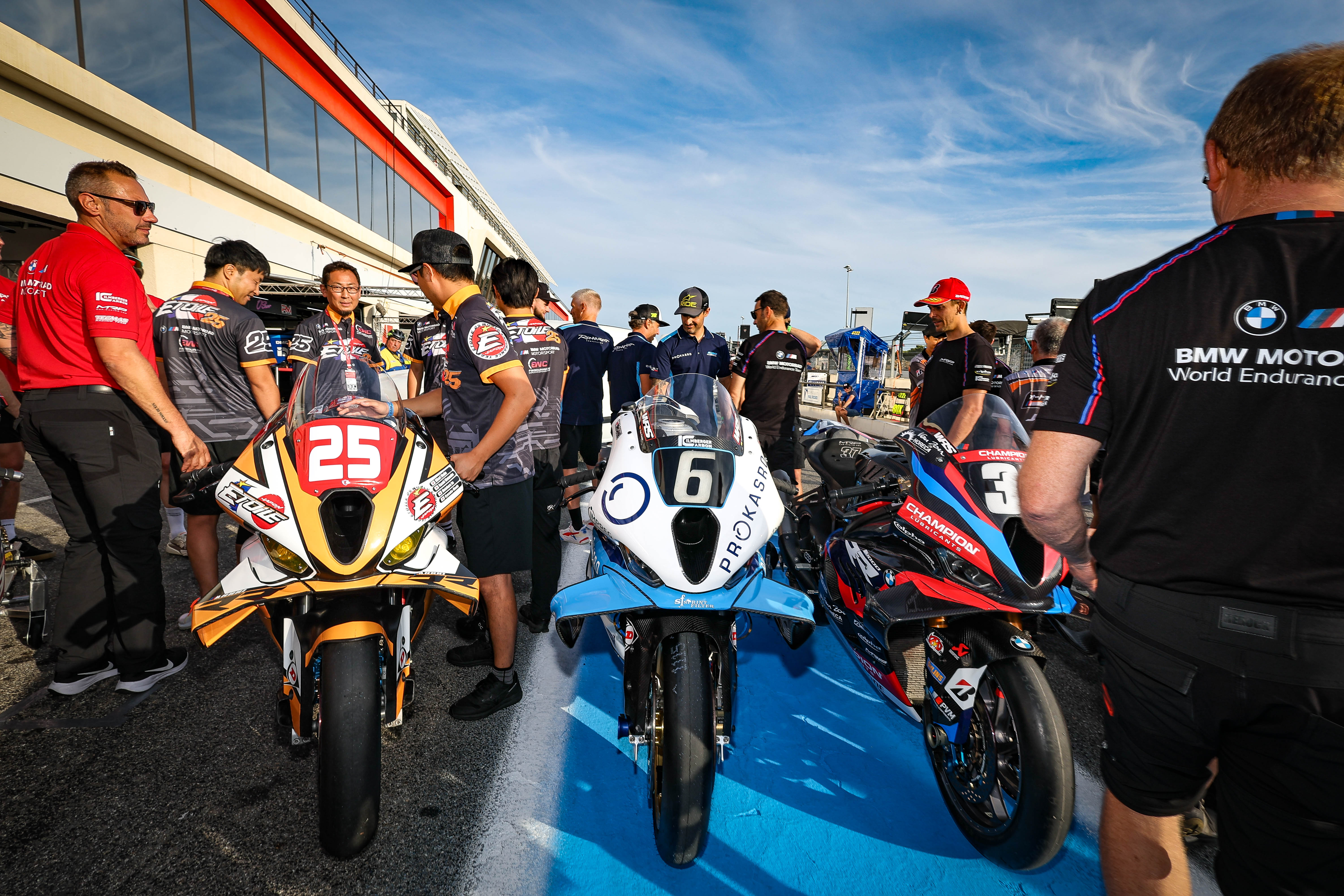 Le Castellet (FRA), 16th to 21st September 2025. BMW Motorrad Motorsport, FIM Endurance World Championship, FIM EWC, Circuit Paul Ricard, Bol d'Or, BMW Motorrad Motorsport Group photo. Markus Reiterberger (GER), Sylvain Guintoli (FRA), Steven Odendaal (RSA), Hannes Soomer (EST), Kenny Foray (FRA), Ilya Mikhalchik (UKR), David Checa (ESP), Xavi Fores (ESP), Naomichi Uramoto (JPN), Loris Baz (FRA), Leandro Mercado (ARG), Enzo Boulom (FRA), Danny Webb (GBR), Marek Szkopek (POL), Jéremy Ollivier, Mathieu Medique, Olivier Louault, Lucas Sassone, Jan-Ole Jähnig (GER), Loris Cresson (FRA), Bálint Kovács (HUN), Hikari Okubo, Motoharu Ito, Kazuki Watanabe, Kyosuke Okuda (all JPN).