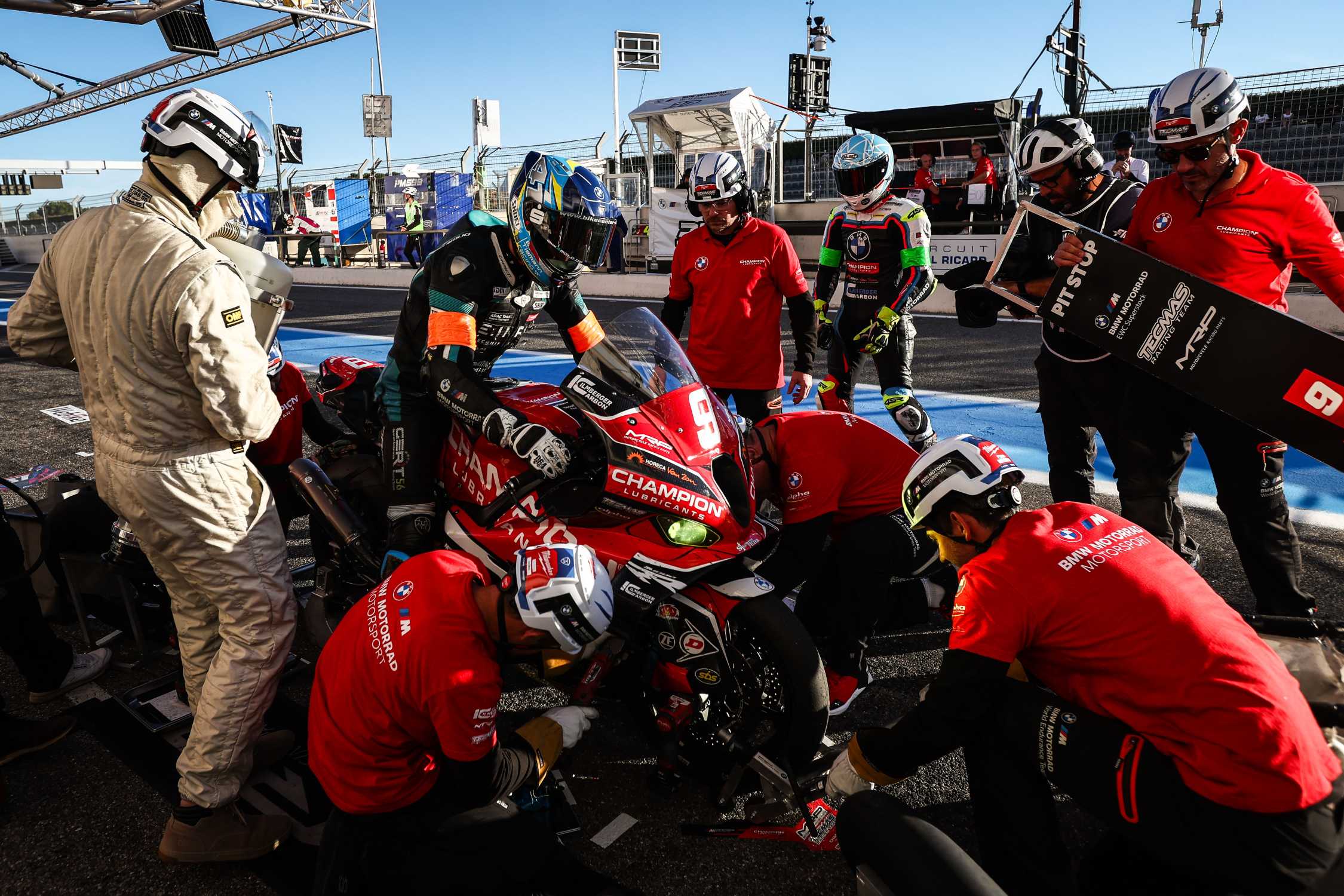 Le Castellet (FRA), 16th to 21st September 2025. BMW Motorrad Motorsport, FIM Endurance World Championship, FIM EWC, Circuit Paul Ricard, Bol d'Or, SST class, #9 BMW M 1000 RR, Champion-MRP-Tecmas, Jan-Ole Jähnig (GER), Loris Cresson (FRA), Bálint Kovács (HUN).