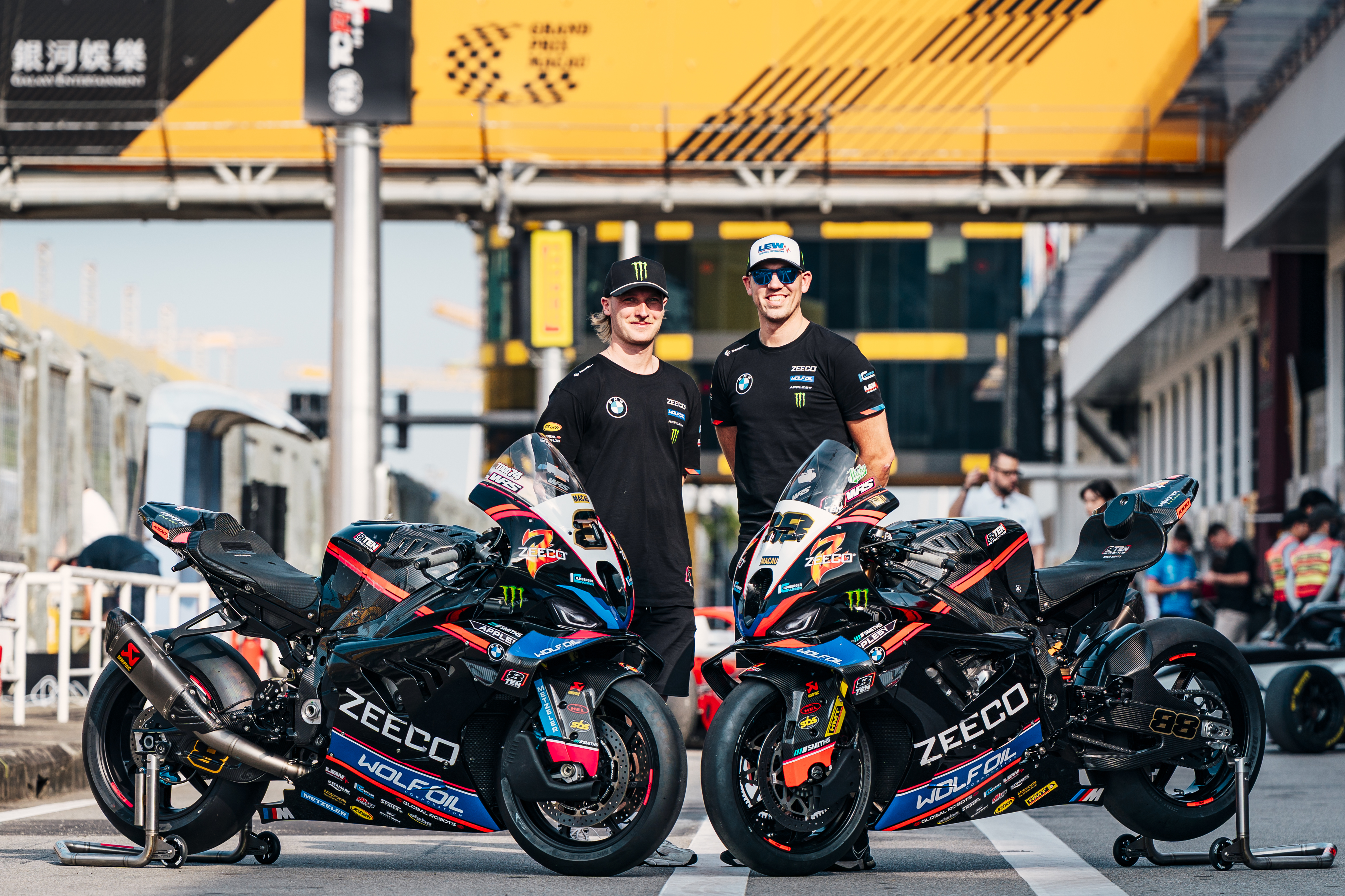 Macau (CHN), 12th to 15th November 2025. BMW Motorrad Motorsport, Road Racing, 57th Macau Motorcycle Grand Prix, Zecco BMW Motorrad, #8 BMW M 1000 RR, Davey Todd (GBR), #88 BMW M 1000 RR, Peter Hickman (GBR).