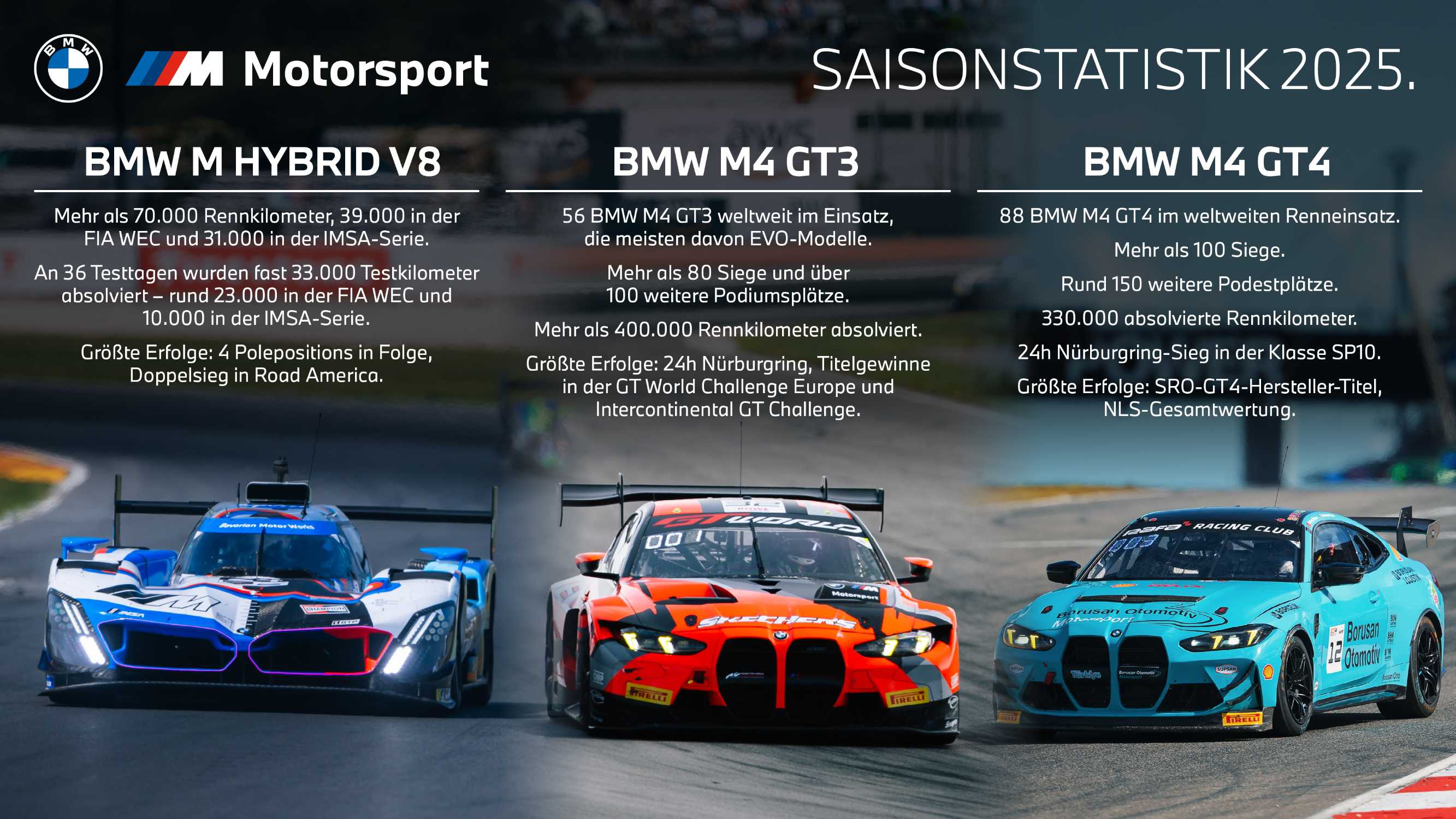 Munich (GER), 10 December 2025. BMW M Motorsport, stats, 2025 season, overview, facts and figures, German, BMW M Hybrid V8, BMW M4 GT3 EVO, BMW M4 GT4 ...