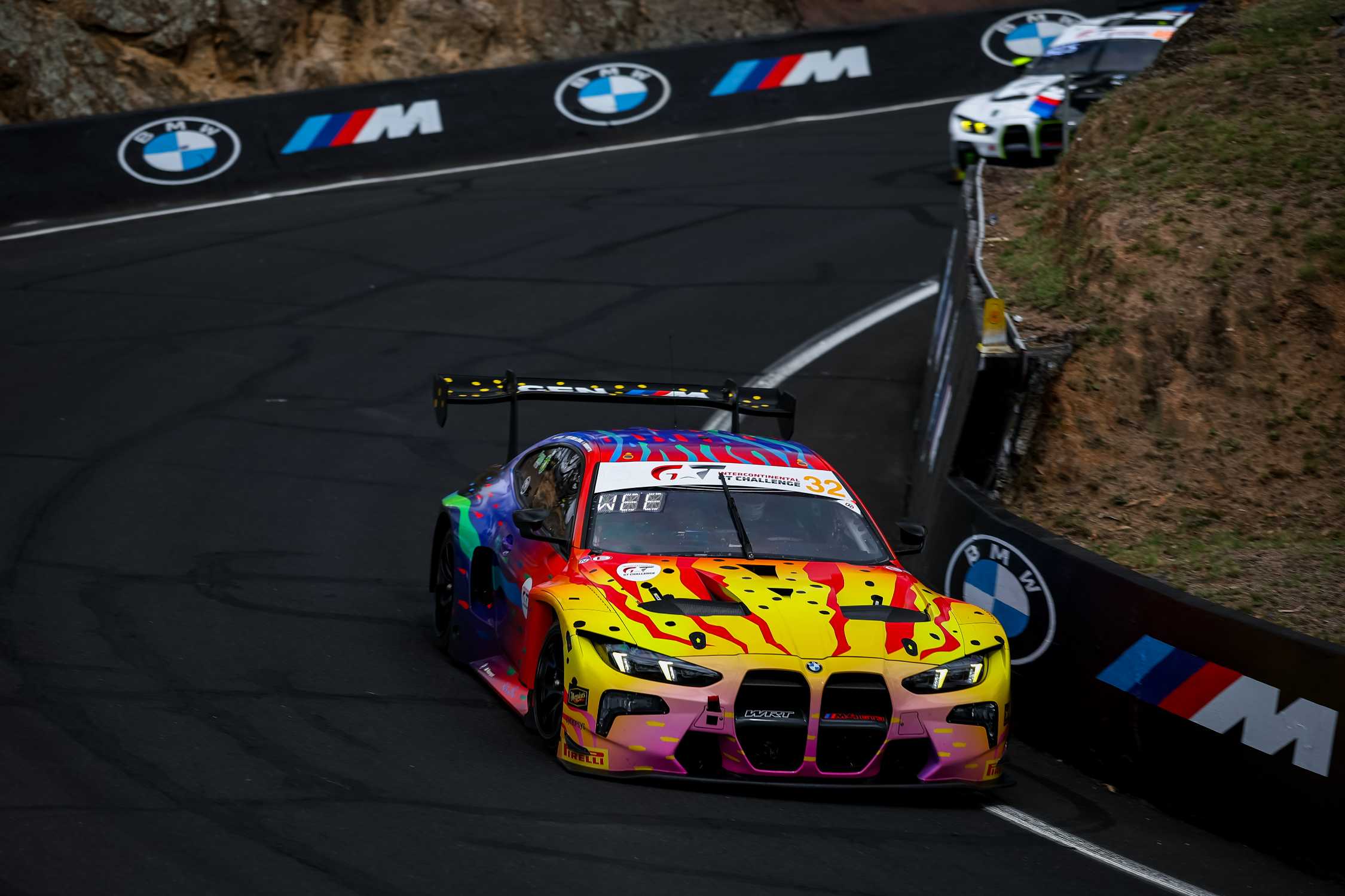 Bathurst (AUS), 11-15 February 2026. Intercontinental GT Challenge, IGTC, Bathurst 12 Hour, Mount Panorama Circuit, Team WRT, #32 BMW M4 GT3 EVO, Ken Done, 1989 BMW M3 Art Car tribute, livery, design, Kelvin van der Linde, Jordan Pepper, Charles Weerts.