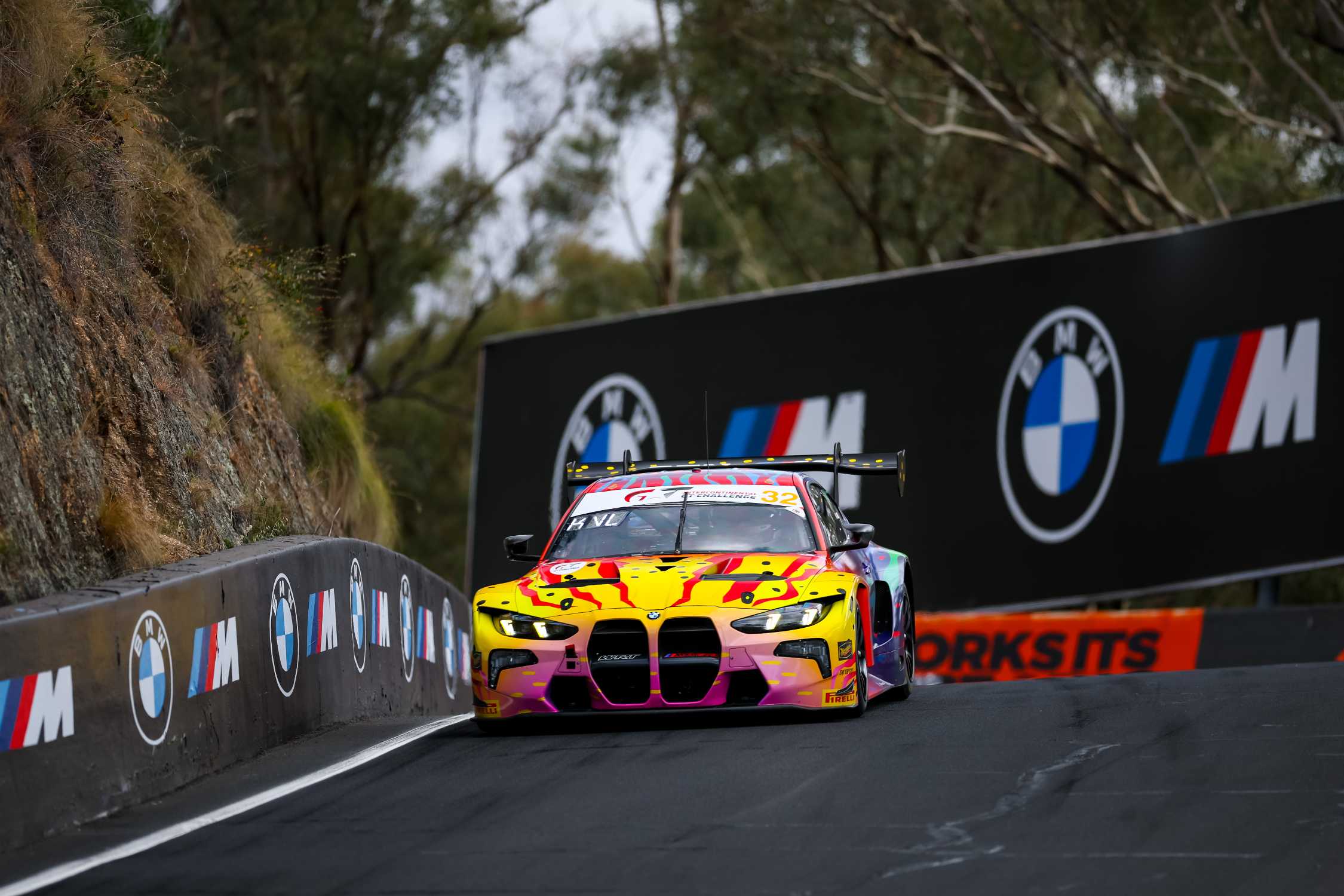 Bathurst (AUS), 11-15 February 2026. Intercontinental GT Challenge, IGTC, Bathurst 12 Hour, Mount Panorama Circuit, Team WRT, #32 BMW M4 GT3 EVO, Ken Done, 1989 BMW M3 Art Car tribute, livery, design, Kelvin van der Linde, Jordan Pepper, Charles Weerts.
