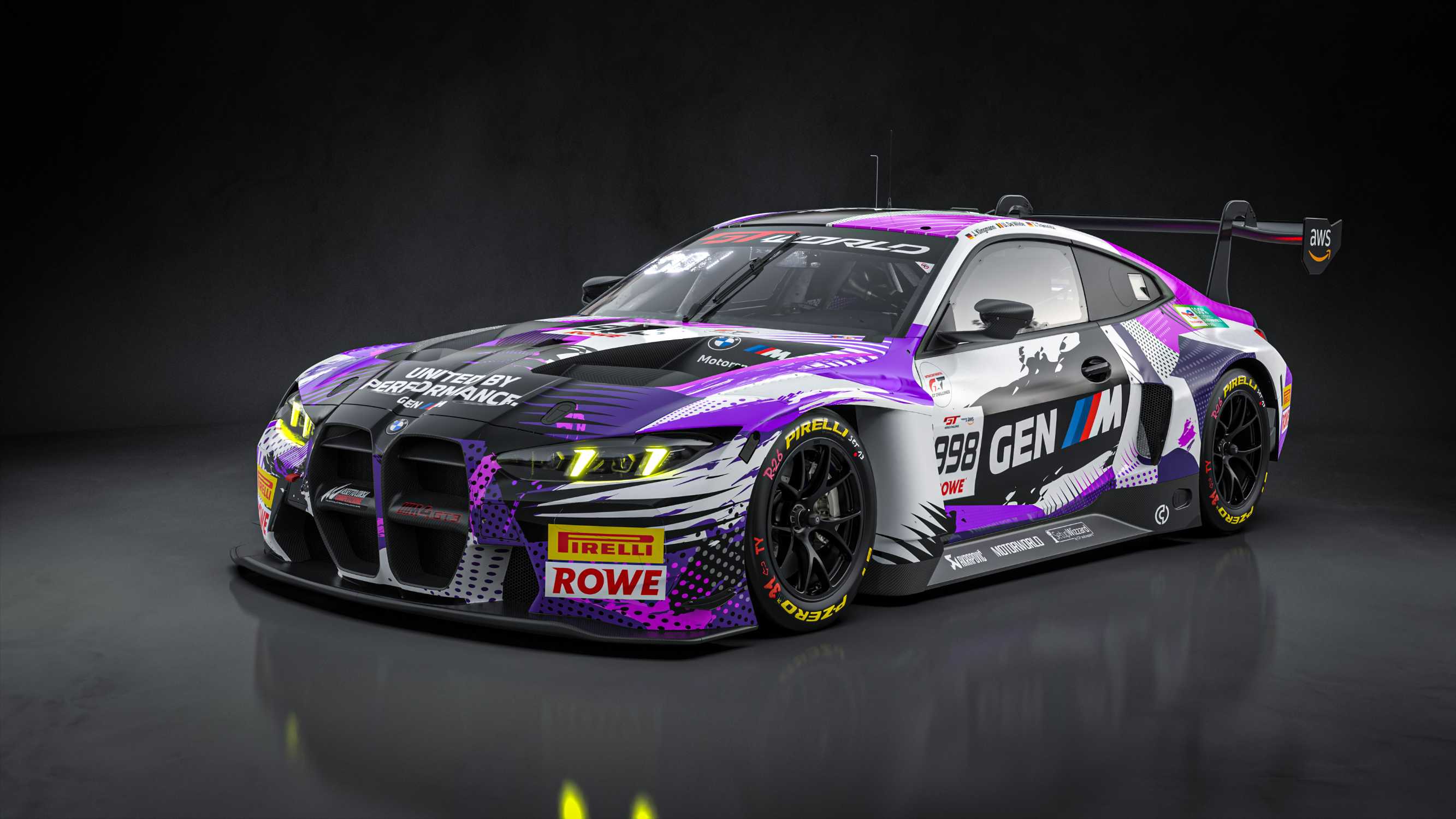 Munich (GER), 2 April 2026. #998 BMW M4 GT3 EVO, GEN M, United by Performance, ROWE Racing, GT World Challenge Europe powered by AWS, Jens Klingmann, Ugo de Wilde, Tim Tramnitz, livery, design.