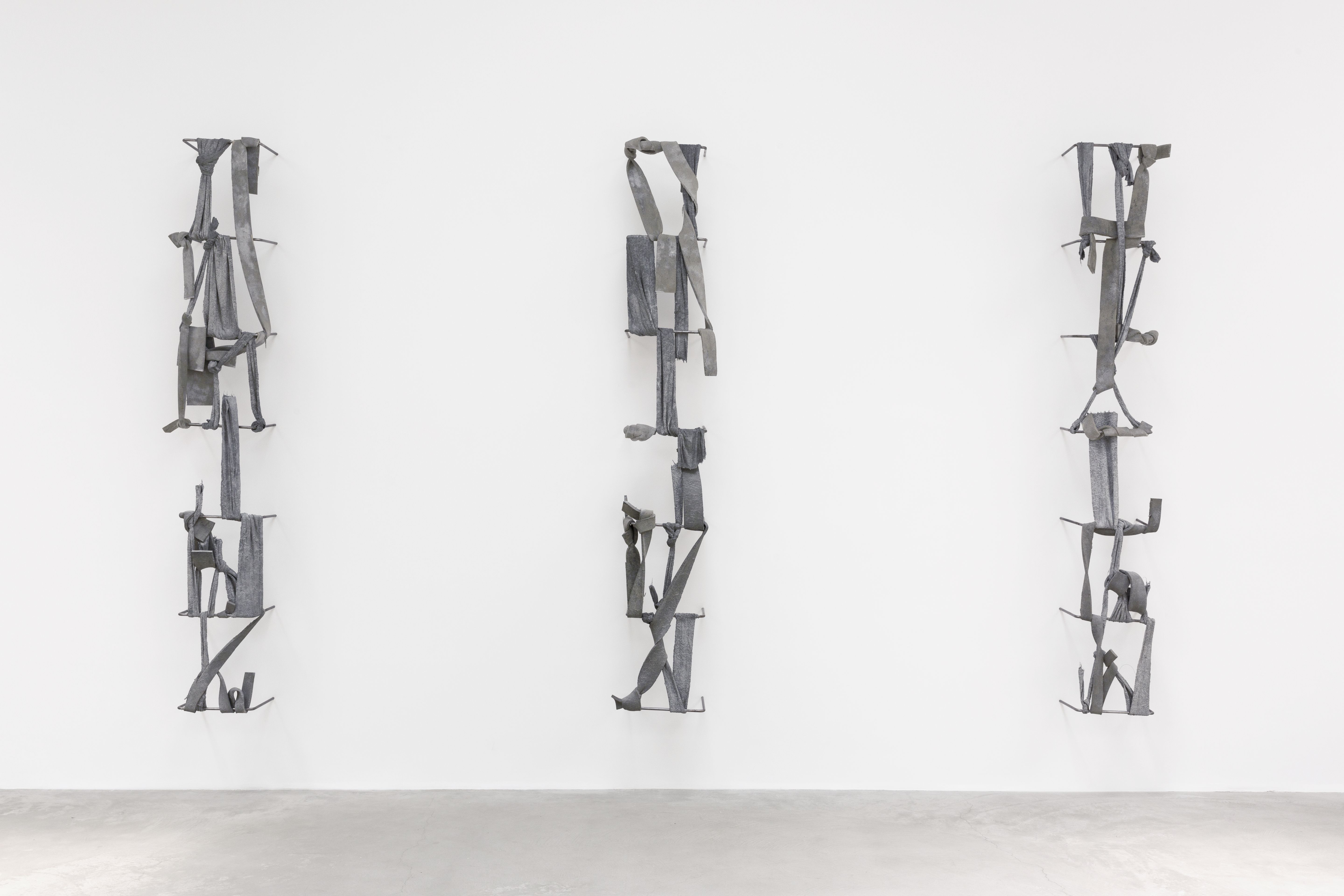 Nikita Gale: FIXED LOOPS I—VI, 2019. Installation view, Rosebud. Concrete, polyurethane foam, terrycloth, steel. Each: approx. 56 x 18.5 x 16 in (142 ...