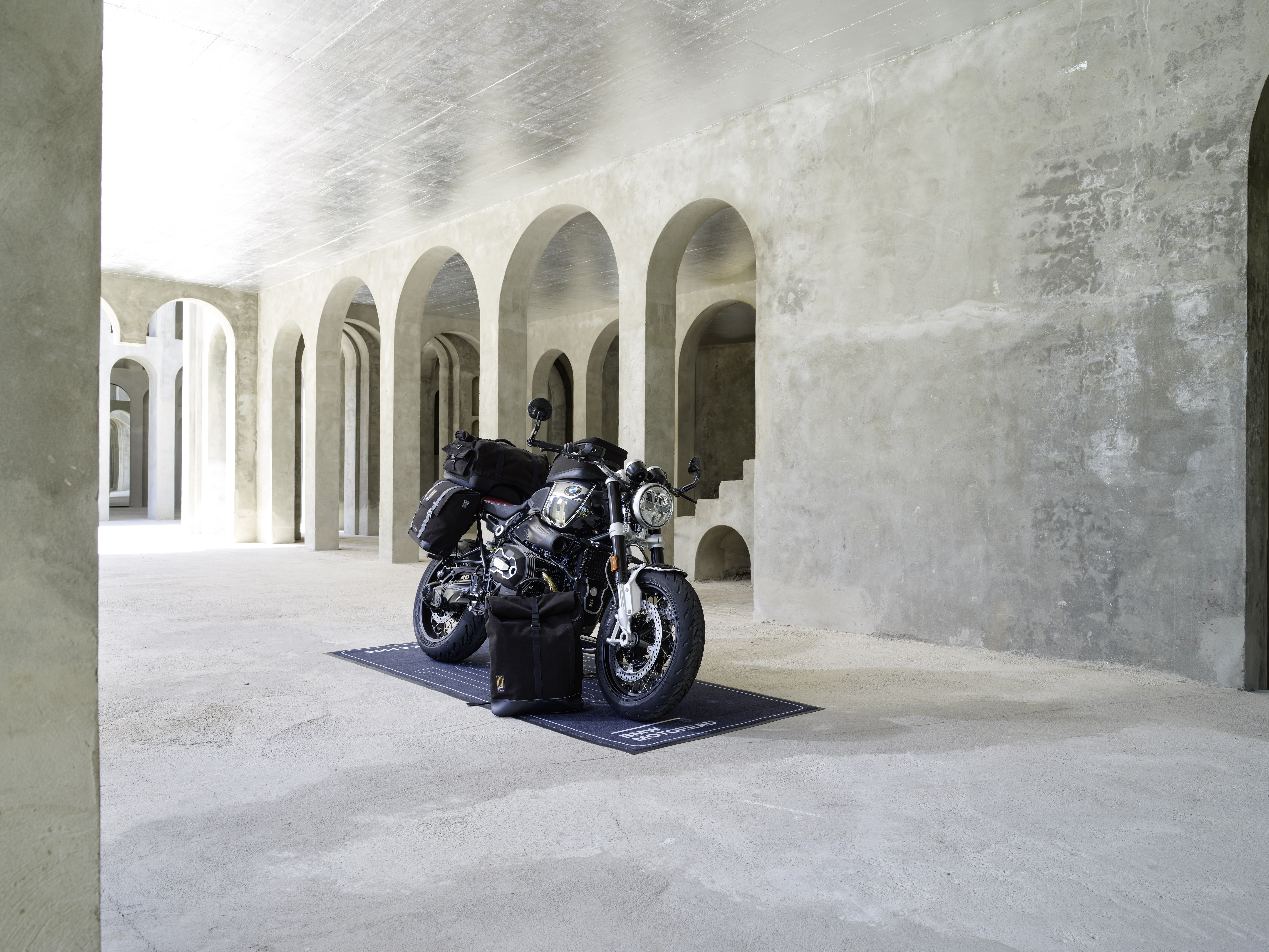 BMW R nineT 100 Years. Original BMW Motorrad Accessories: Tank bag Edition 100 Years, Side bag Edition 100 Years, left, Side bag Edition 100 Years, right, Rear bag Edition 100 Years, Backpack Edition 100 Years and Motorcycle mat Edition 100 Years. (12/2022)