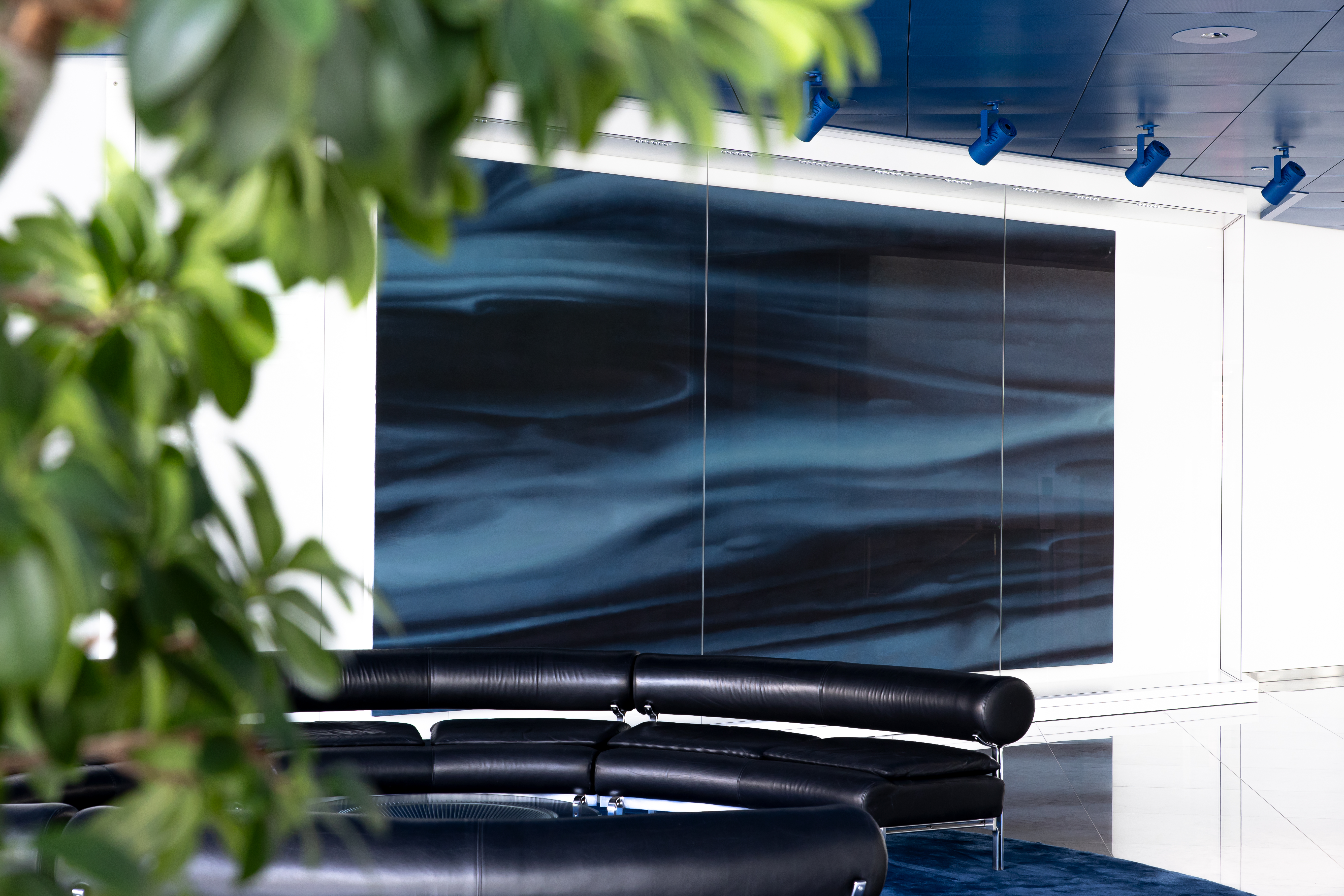Gerhard Richter, Blau, Oel auf Leinwand, 3m x 6m, 1973. Foyer der BMW Group Konzernzentrale in Muenchen. Foto Martin Kerschis. © Gerhard Richter und BMW AG (10/2023)
