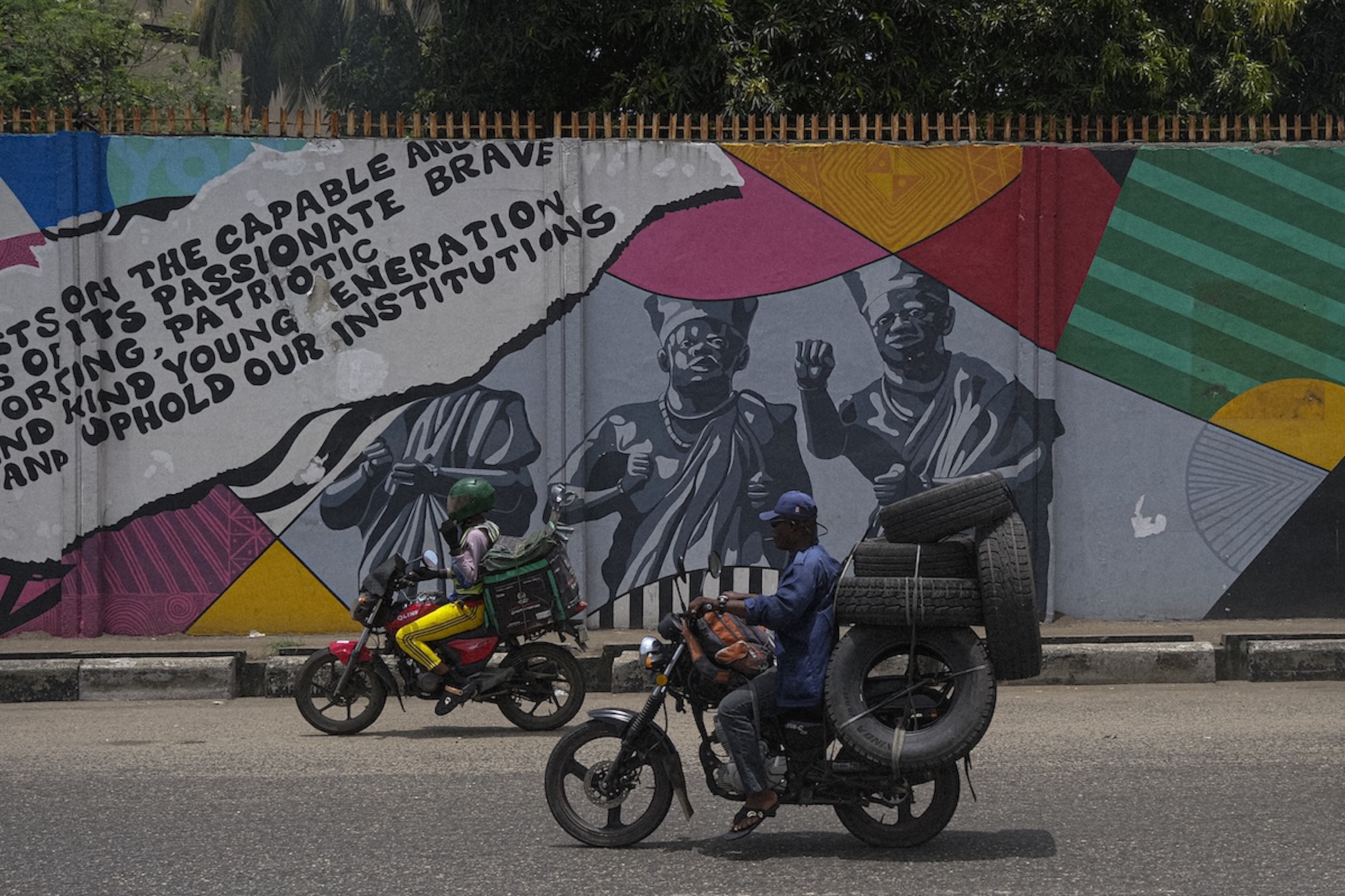 African Film & Media Arts Collective (AFMAC) as part of the BMW Art Car Project #20 by Julie Mehretu. Cityscape in Lagos. Photo: Fawaz Oyedeji (05/2025)