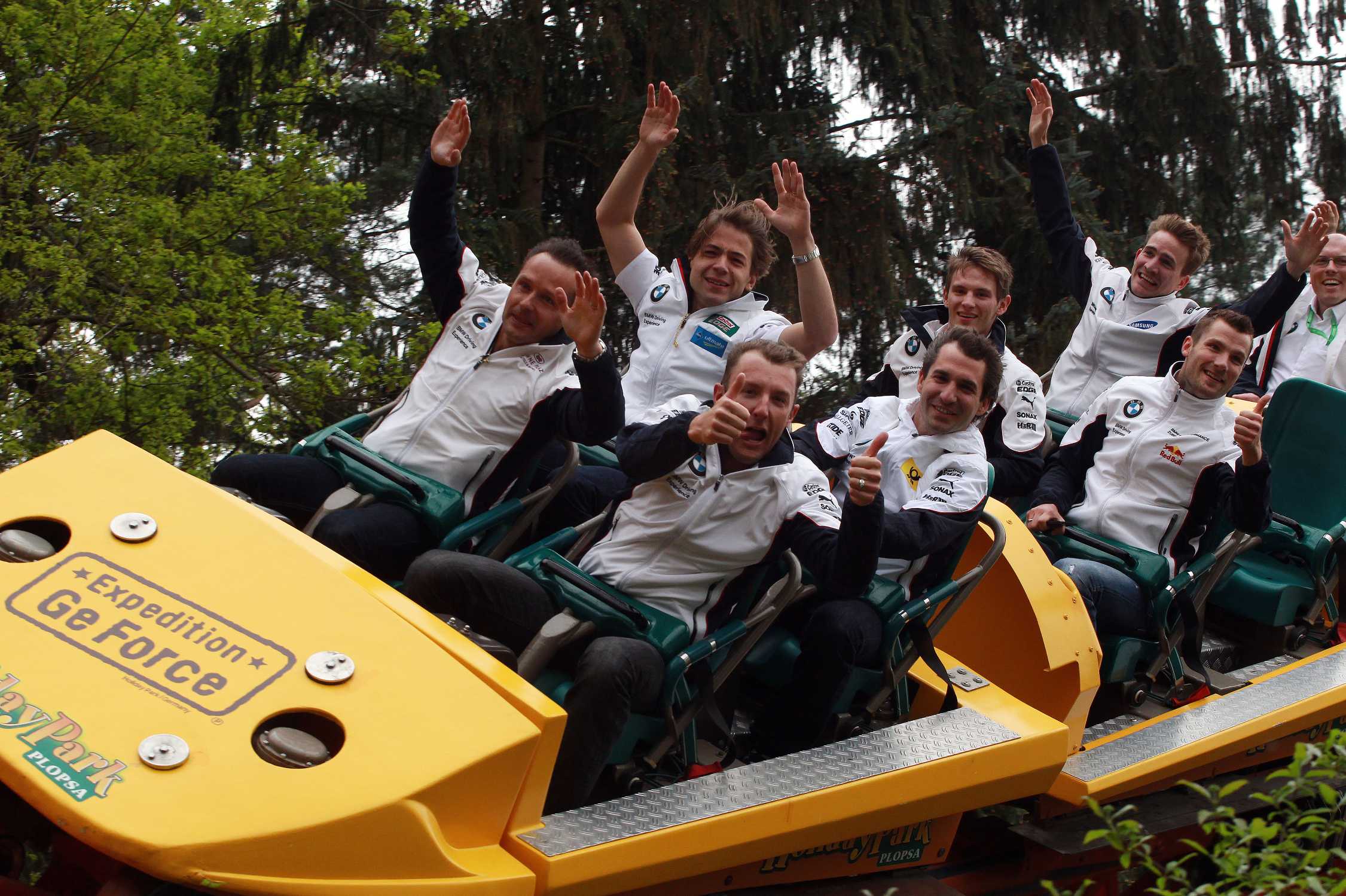 Hockenheim (DE), 3rd May 2013. High-speed relaxation ahead of a thrilling weekend of racing: with one day to go until the first qualifying of the new DTM season in Hockenheim (DE), BMW DTM drivers Dirk Werner (DE), Augusto Farfus (BR), Joey Hand (US), Martin Tomczyk (DE), Andy Priaulx (GB), Marco Wittmann (DE) and Timo Glock (DE) spent their last few free hours at the Holiday Park theme park in Hassloch (DE). The drivers had great fun together on the spectacular rides, as they geared up for the first showdown of the year.