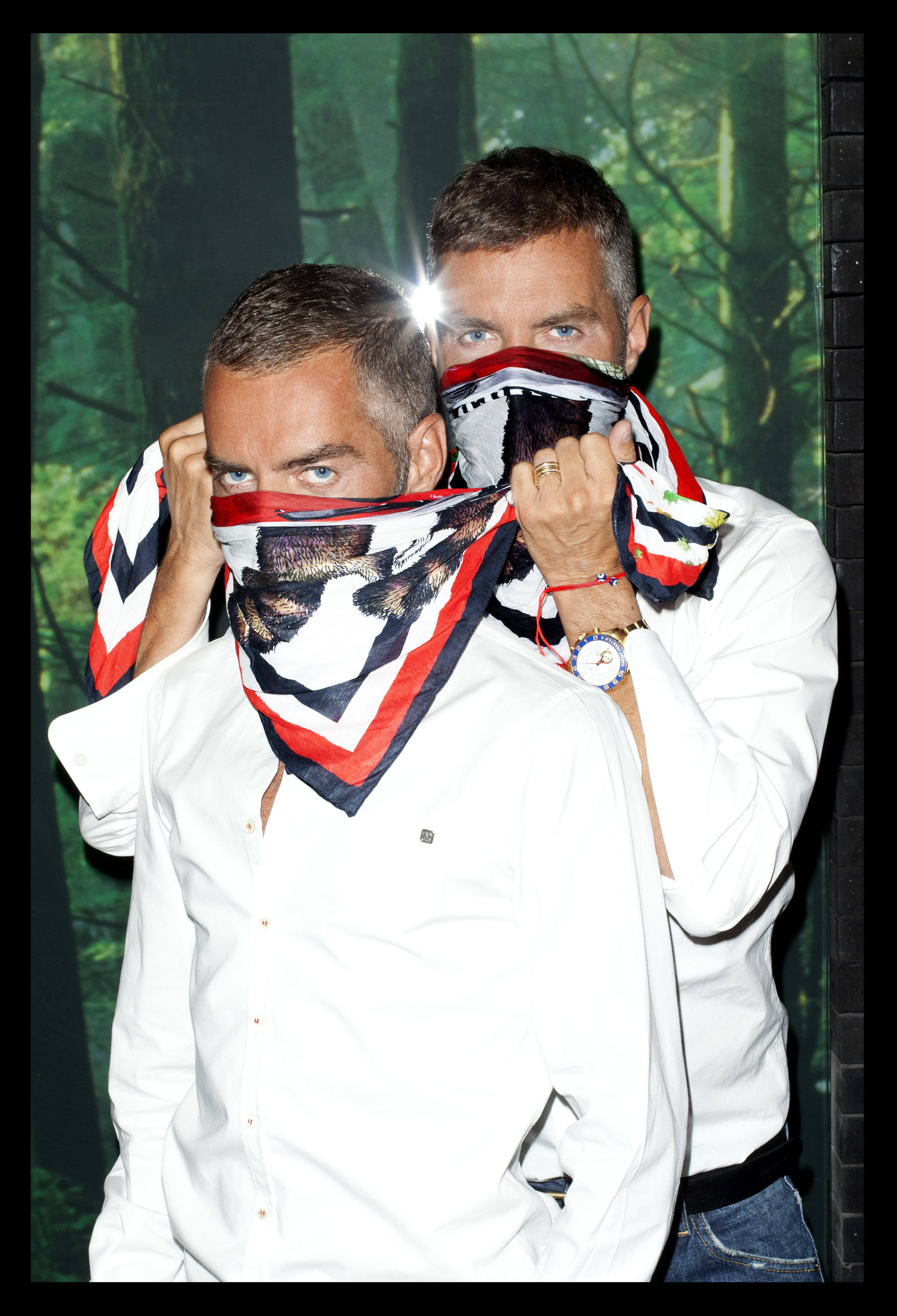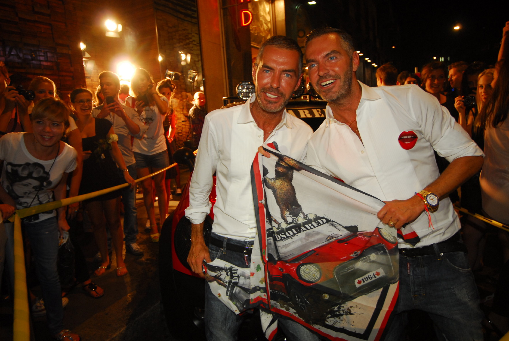 Dean and Dan Caten with „Red Mudder Foulard by MINI & DSQUARED²" (09/2011)